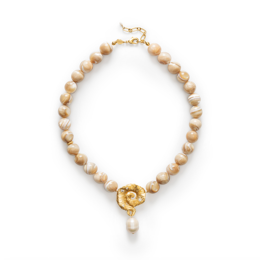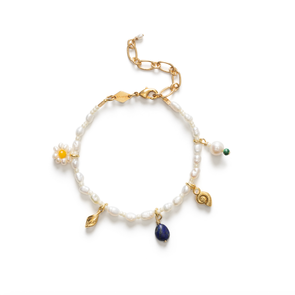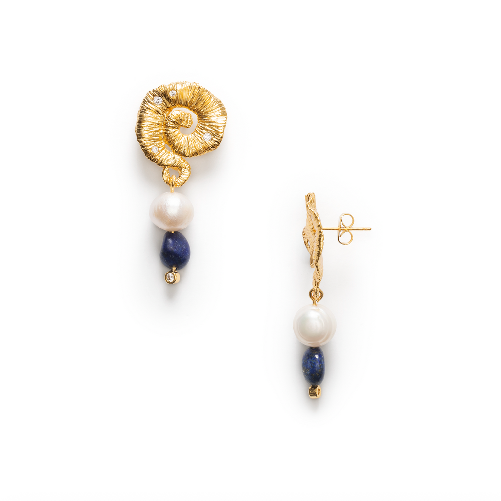 Materials: 18k gold plated brass, Baroque pearls, Natural gemstones, Glass beads