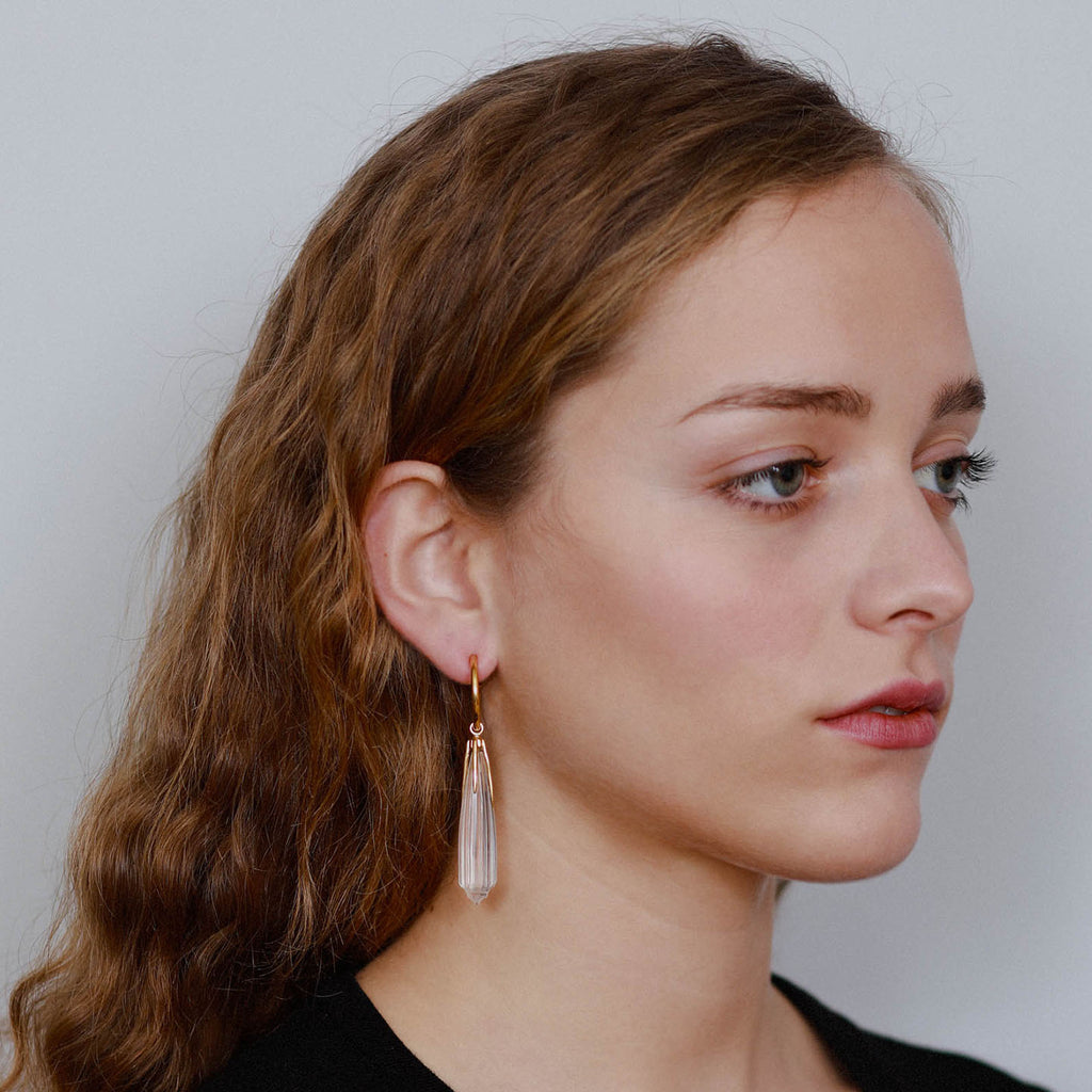 Hand carved clear quartz hoop earrings. Blessed water drop earrings