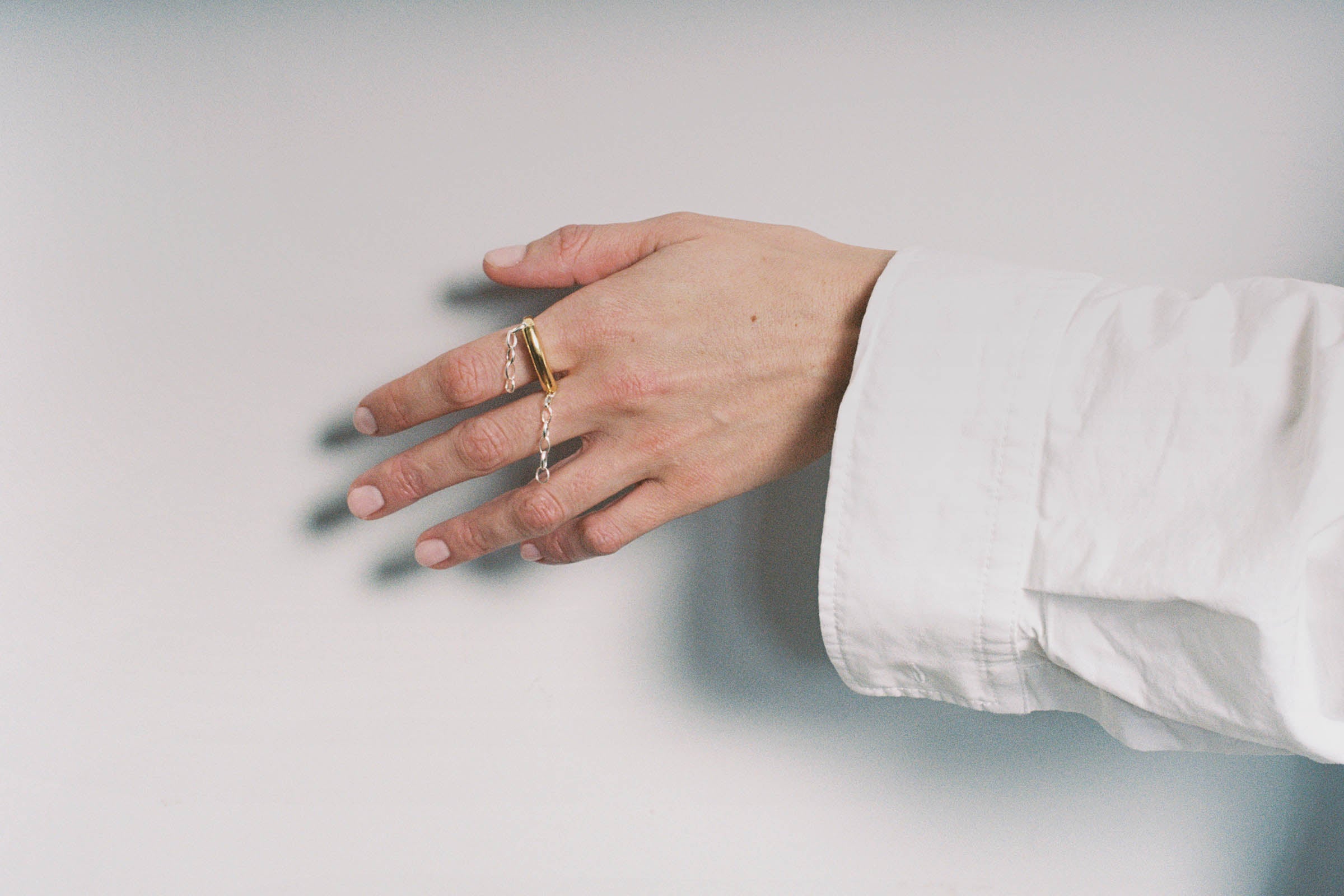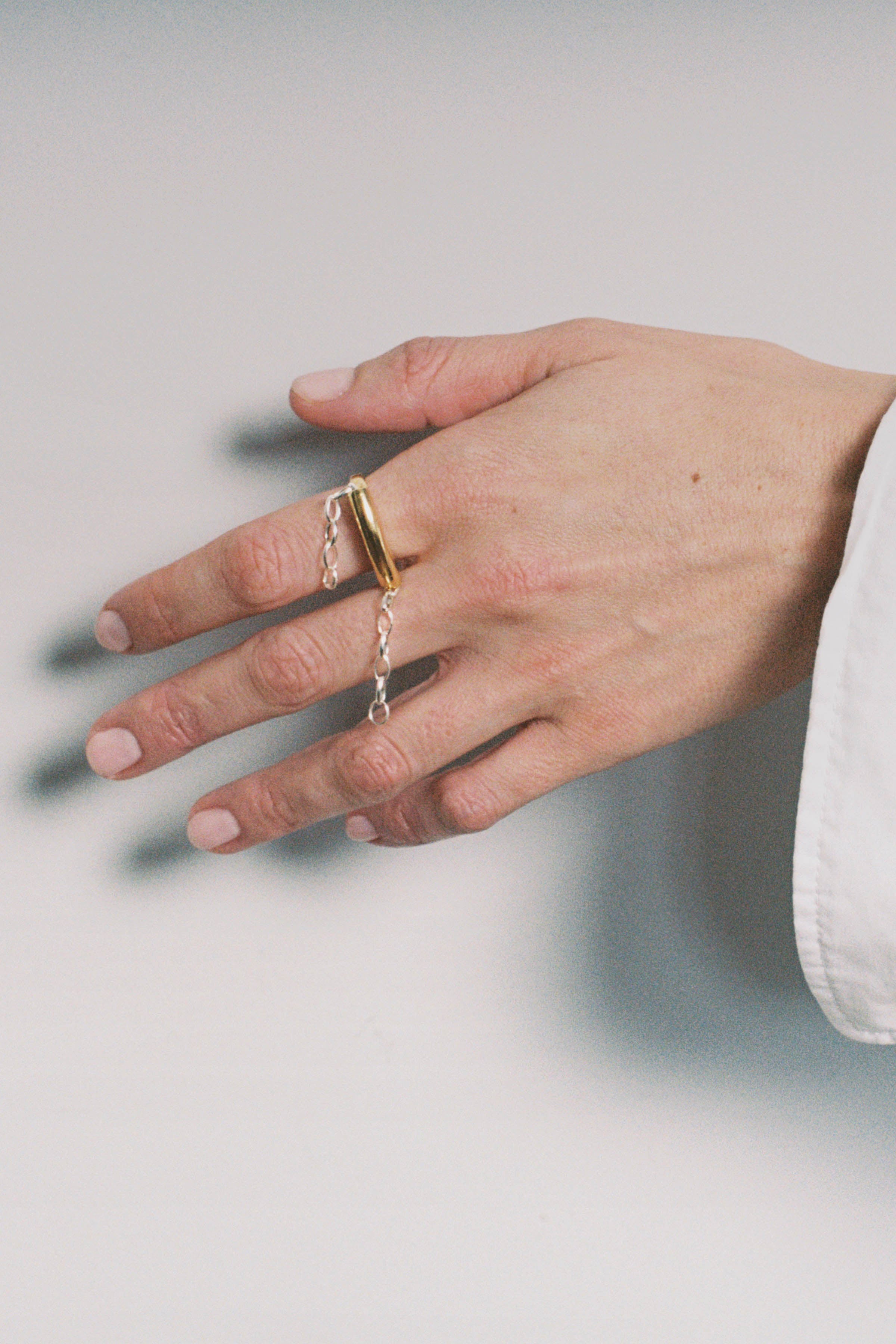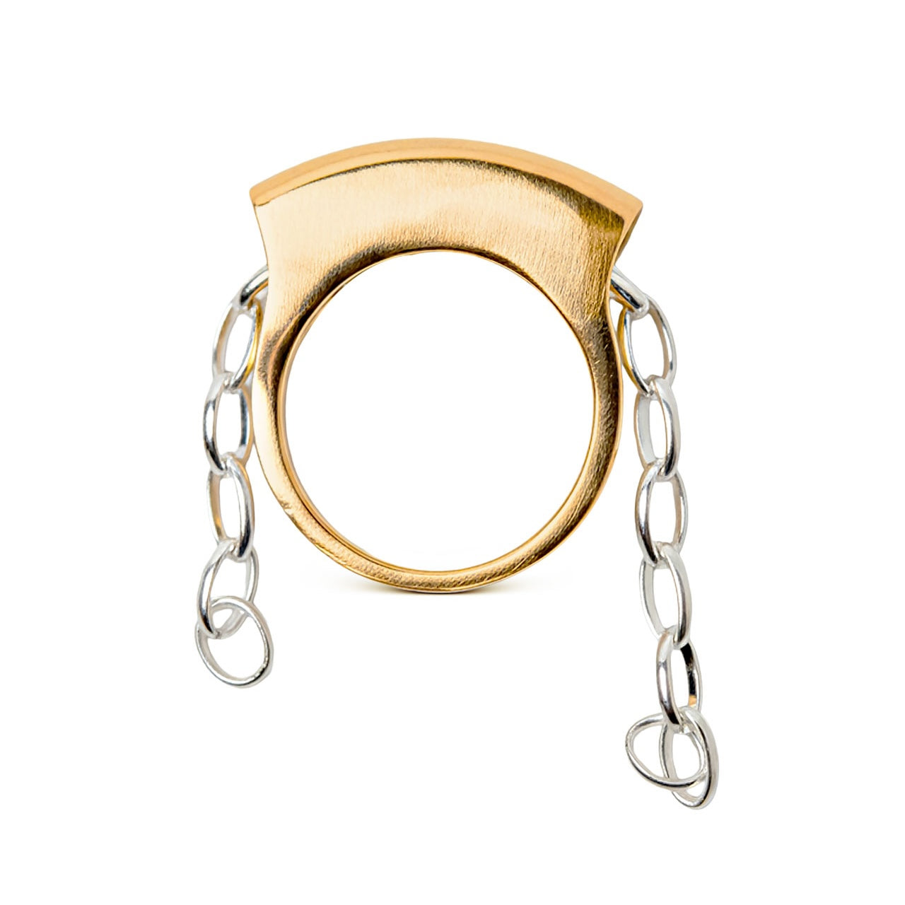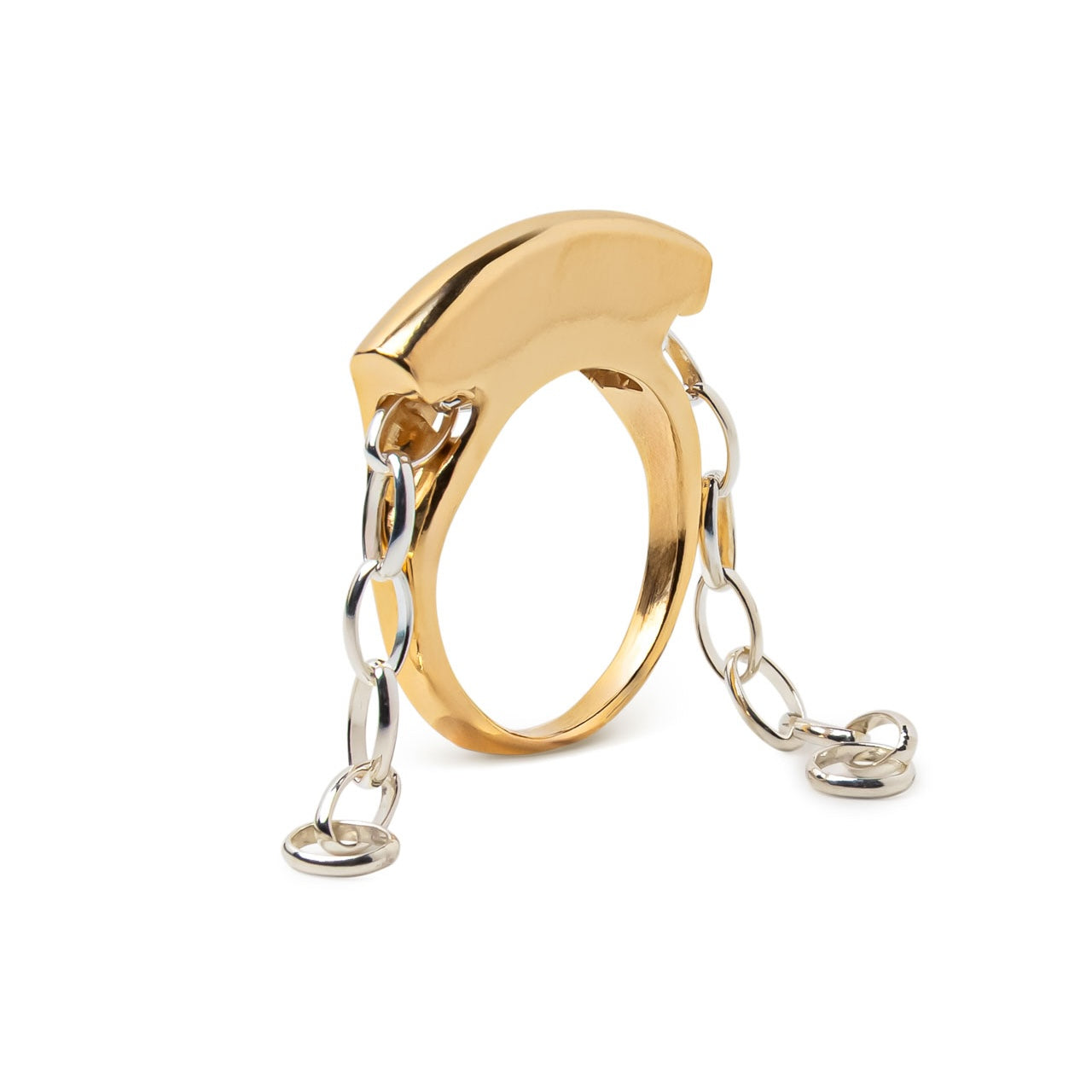 Ring featuring a movable dangling chain detail.