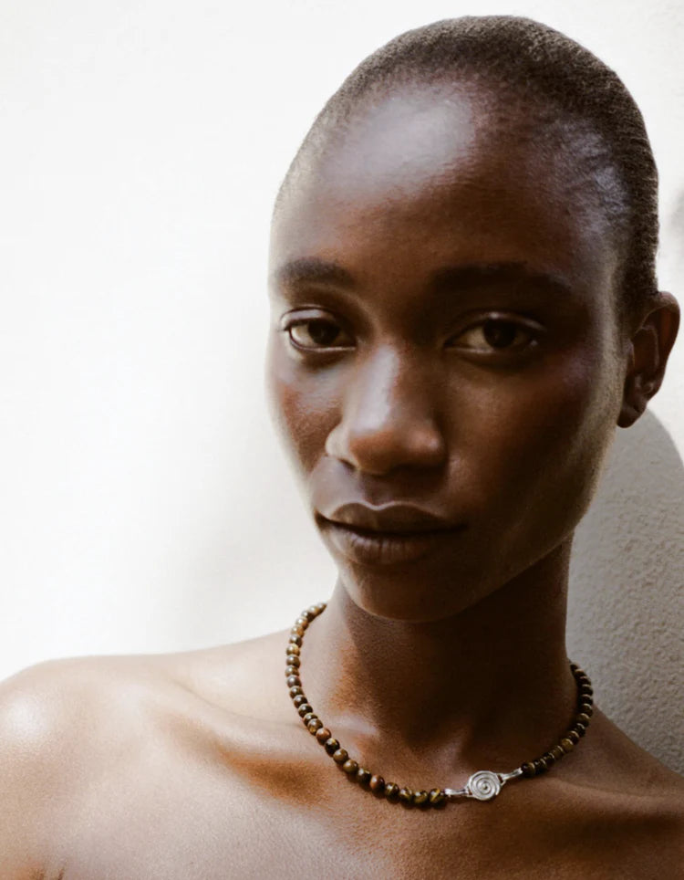 Césart - Series IV - Petite Beaded Swirl Necklace - Silver / Tiger's Eye