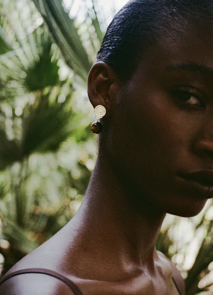 Césart - Series IV - Swirl Bead Earrings - Gold / Tiger's Eye