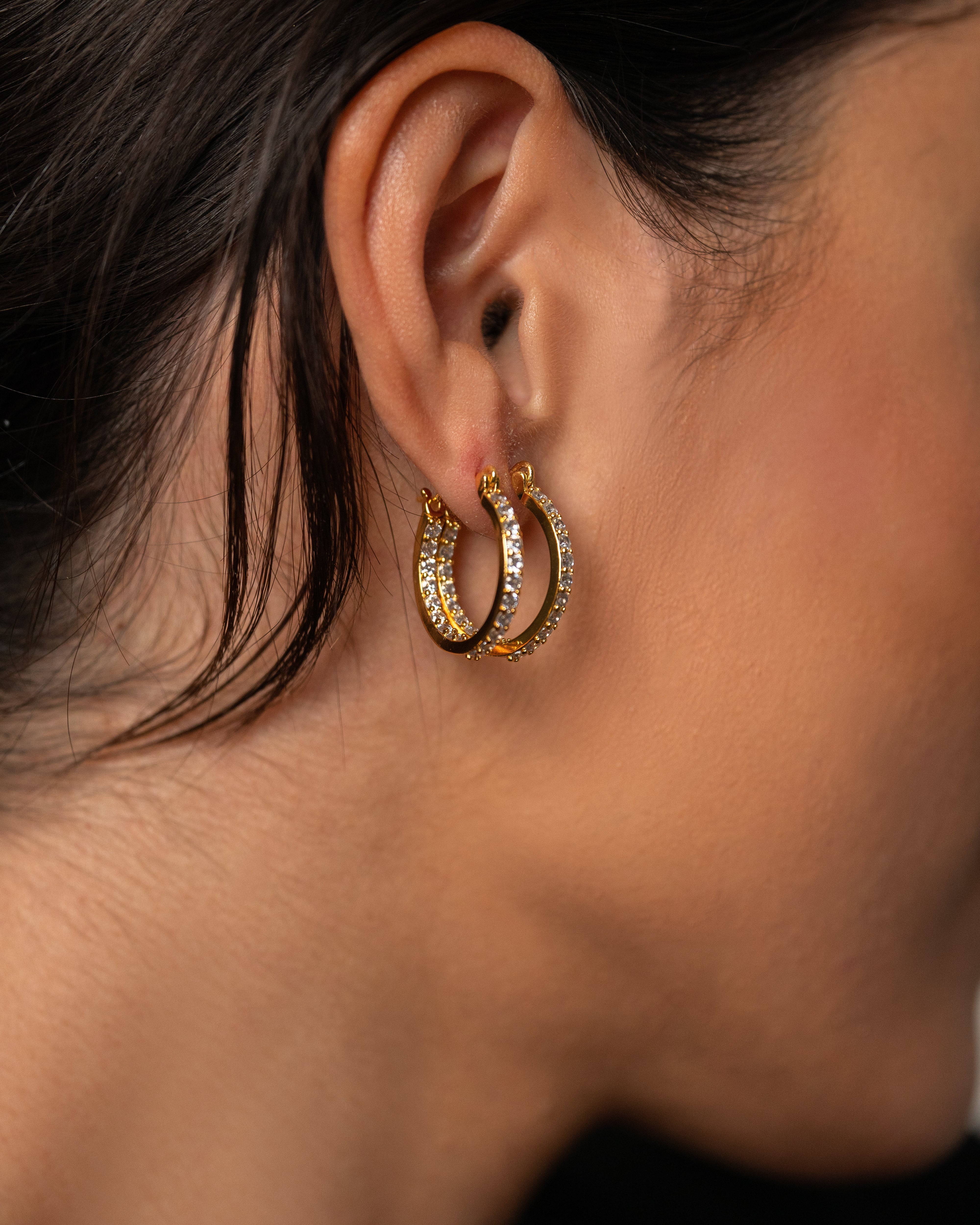 Introducing our beautifully timeless Serena Hoops. These sparkling hoops were designed to seamlessly pair with the Serena Necklaces, offering a cohesive and elegant look to complement any outfit.