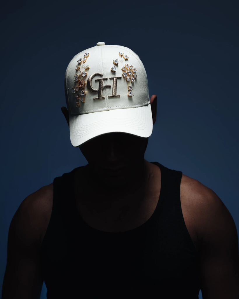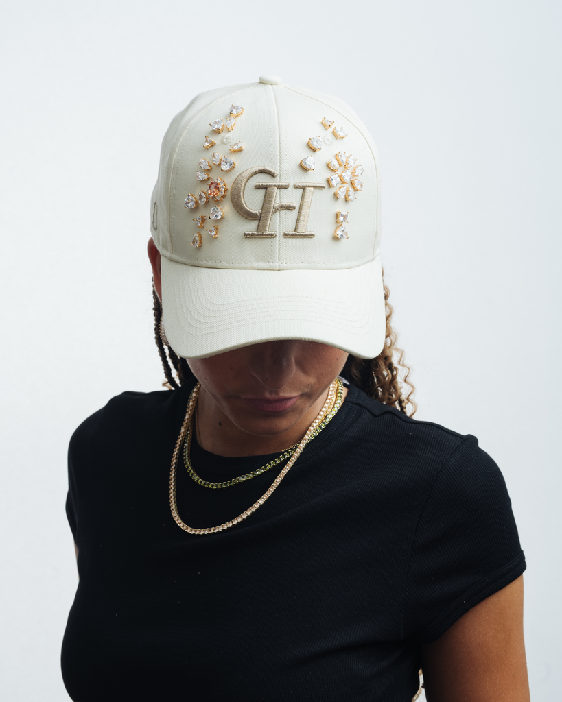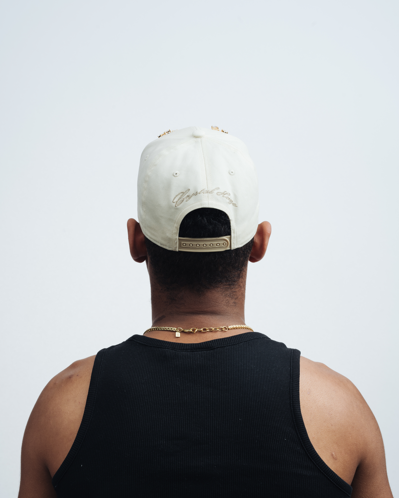 What sets it apart from all other caps: this cap is hand-sewn with shimmering cubic zirconia across the front panel, turning an everyday essential into a bold style statement.