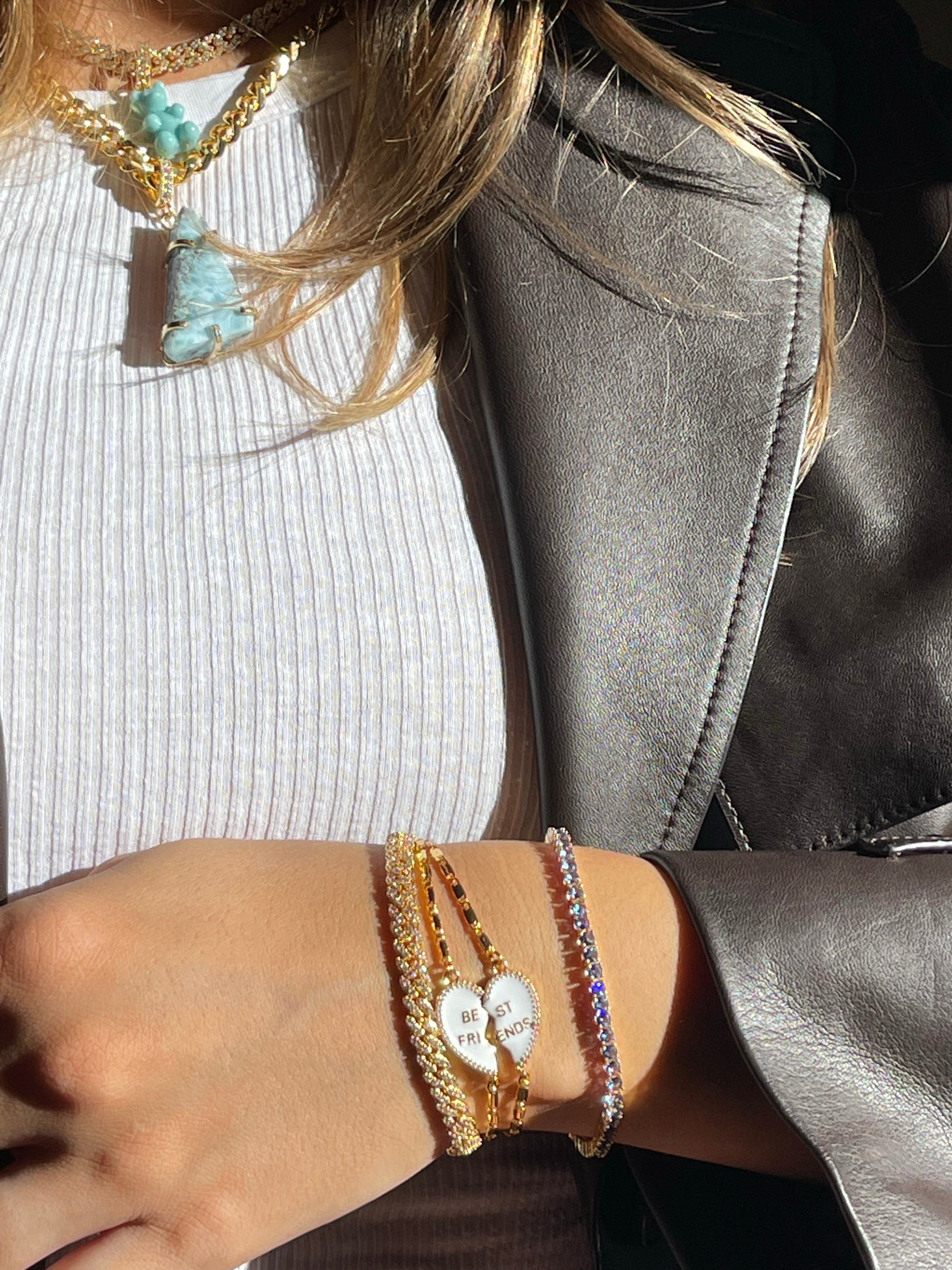 Another Crystal Haze Jewelry creation that has been inspired by childhood memories of the 90s is our iconic Best Friend Bracelet. Friendship bracelets were a staple of 90s culture, so give your bestie the gift of nostalgia and remind them of your cherished memories together.