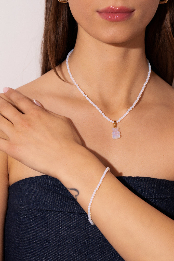 CRYSTAL HAZE - CRYSTAL NECKLACE WITH BEAR PENDANT - 4 COLOURS AVAILABLE