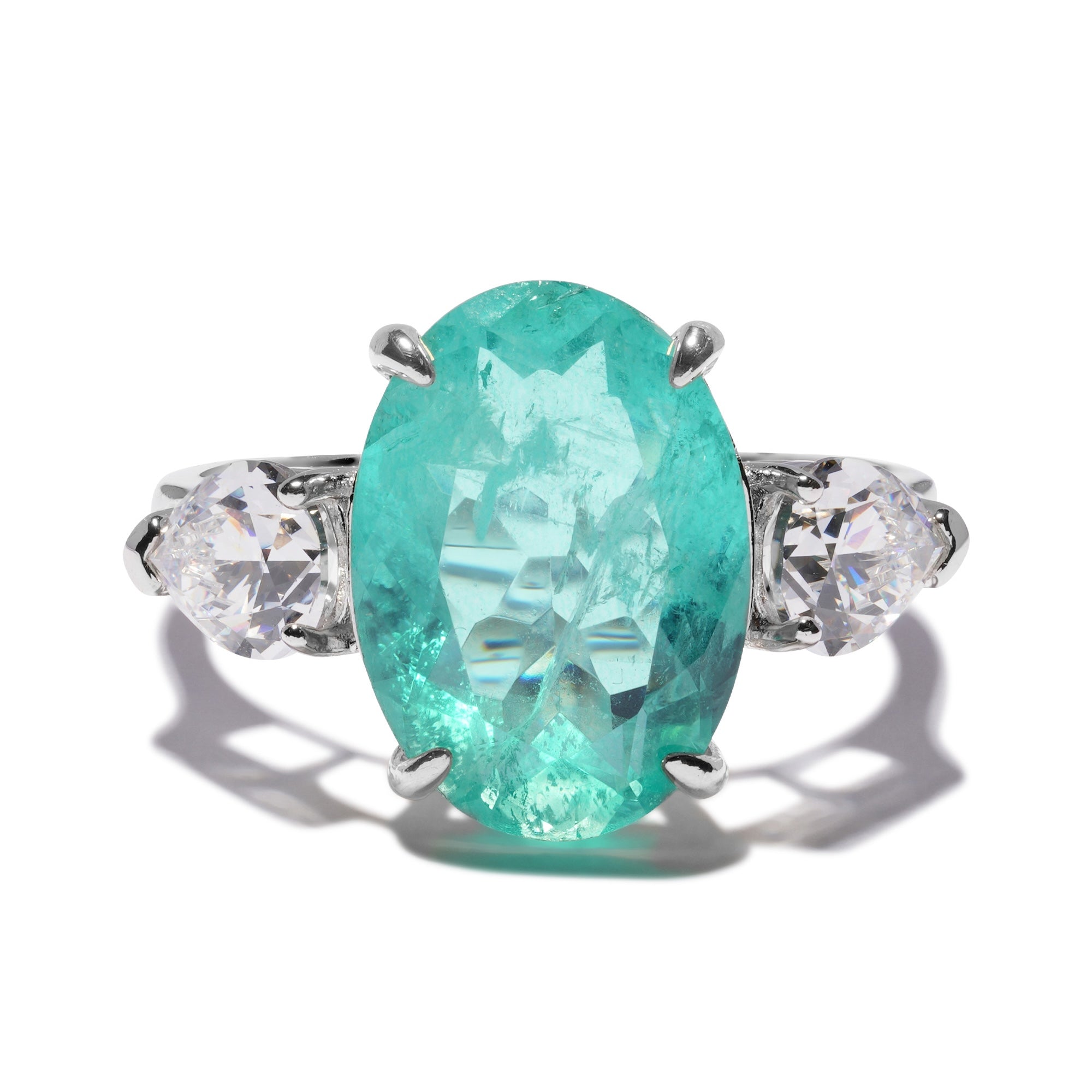 Rhodium Plated 925 Sterling Silver and Synthetic Paraiba