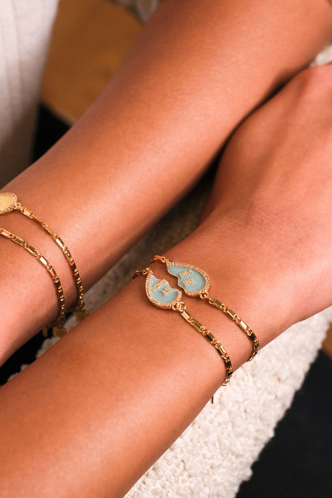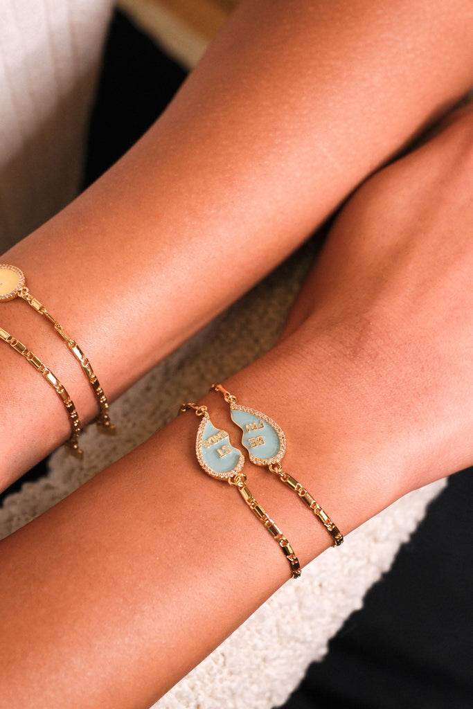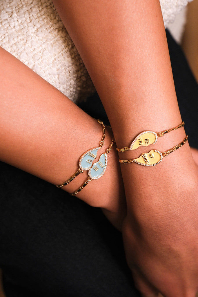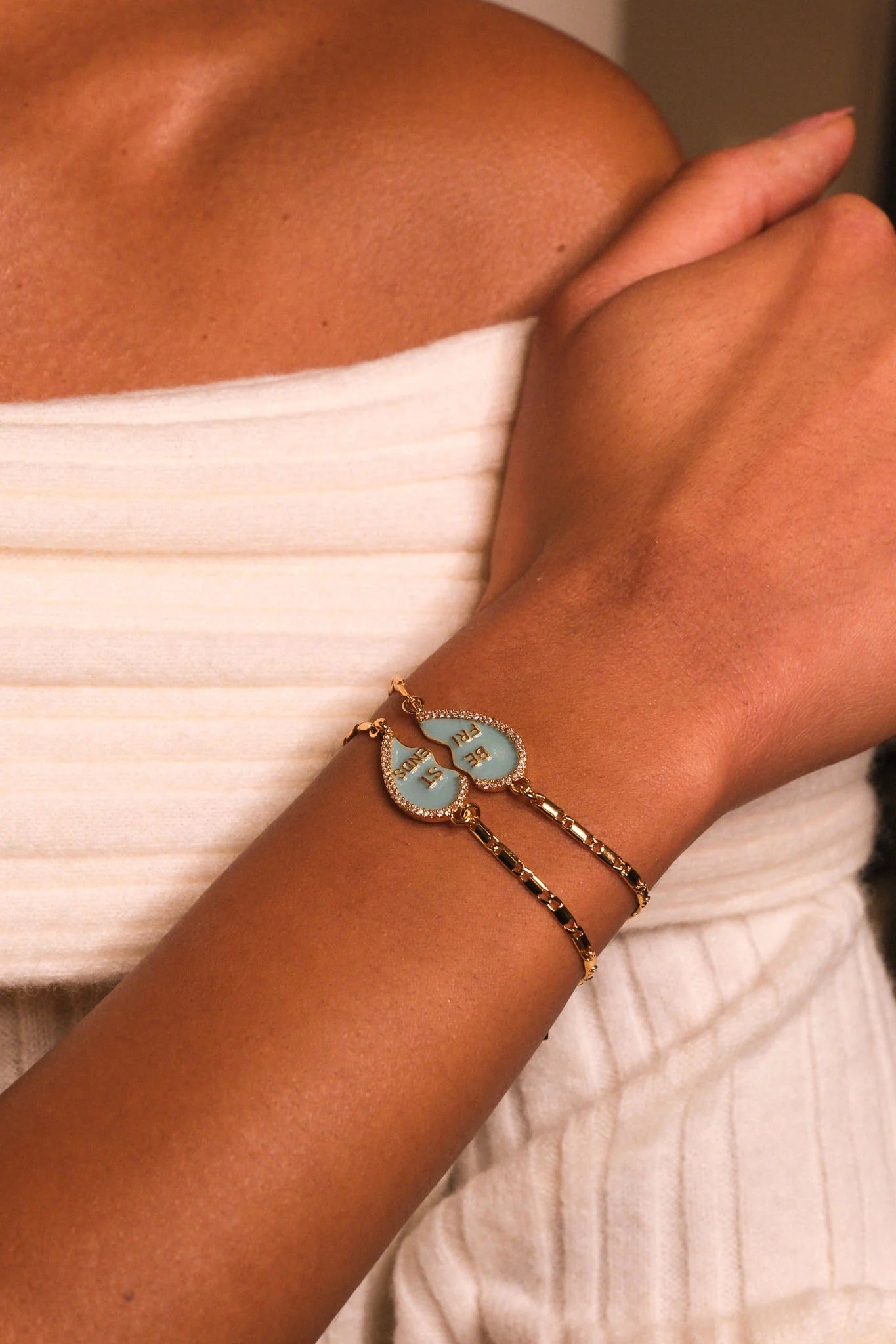 What says nostalgia more than a matching split heart best friend bracelet? Another Crystal Haze Jewelry creation that has been inspired by childhood memories of the 90s is our iconic Best Friend Bracelet, now available in Baby Blue.