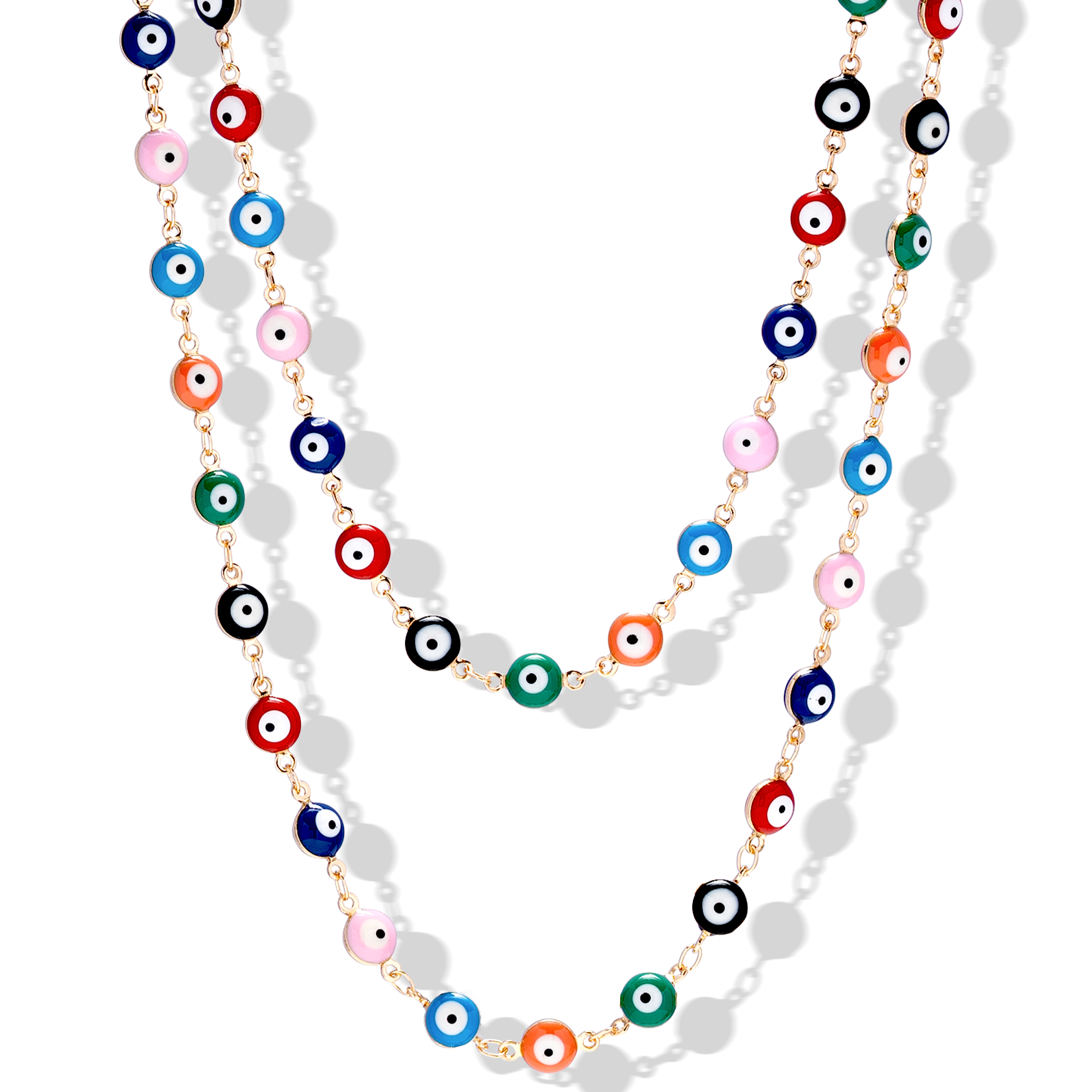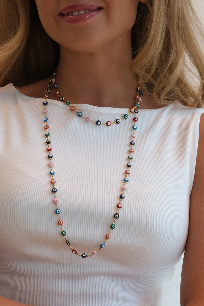 CRYSTAL HAZE - DOUBLE RAINBOW EVIL EYE NECKLACE
