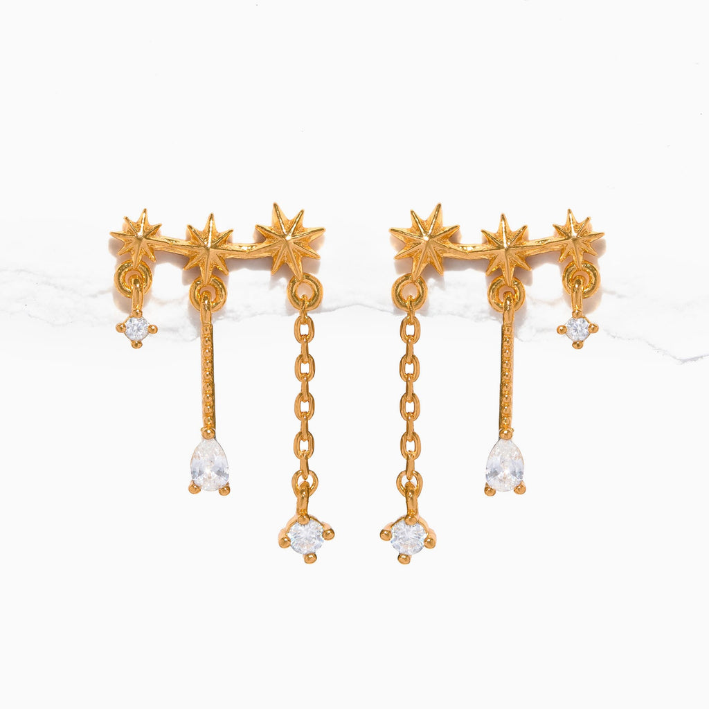 Materials: 18k gold plated over brass with Sterling Silver posts and protective coating for longevity, Cubic Zirconia stones