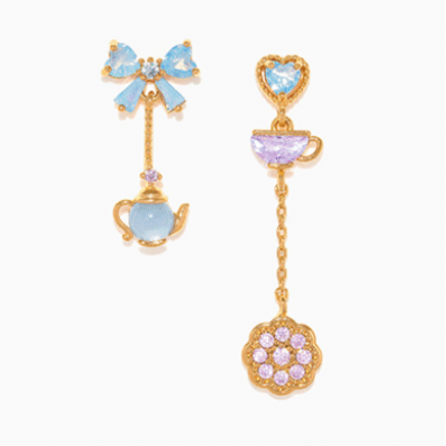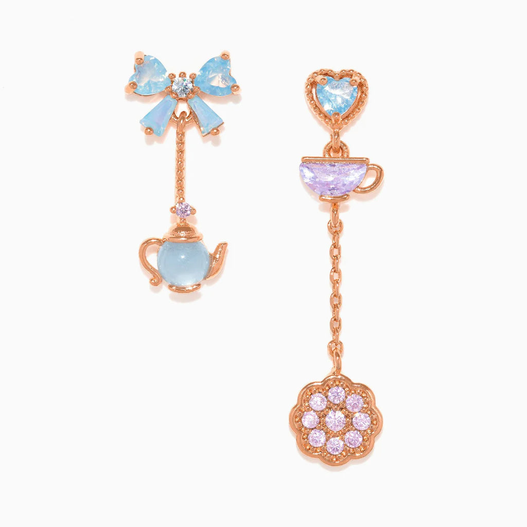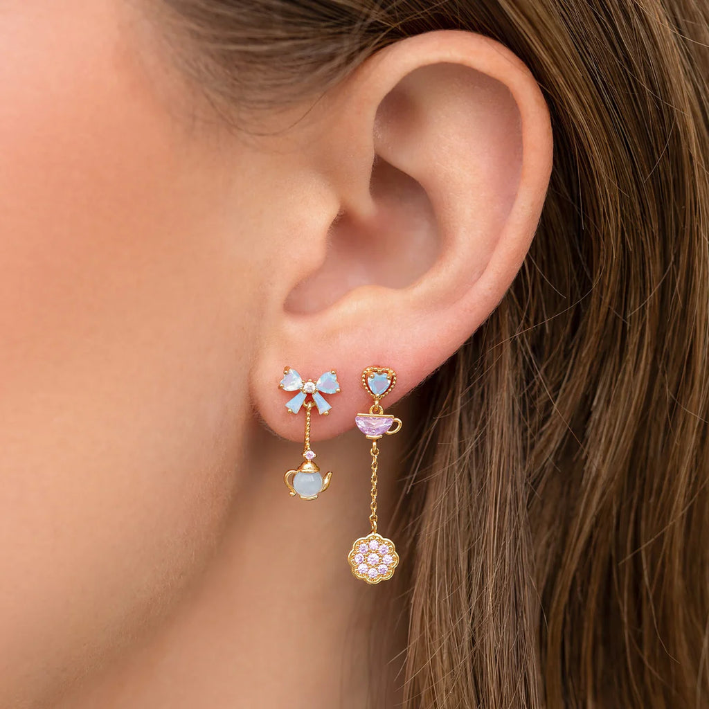 A little of these will go a long way! Our Disney Alice in Wonderland Dangle Earrings guides you on Alice's journey down the rabbit hole. Featuring a delightful blue bow with a dangling teapot that playfully captures the spirit of the iconic tea party! And don’t forget the tea cup and whimsical cookie, a nod to the larger-than-life entrance to Wonderland.
