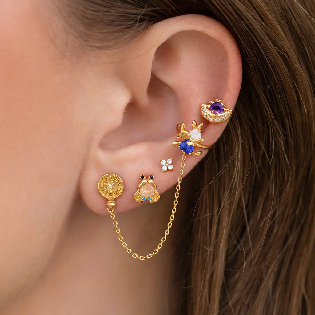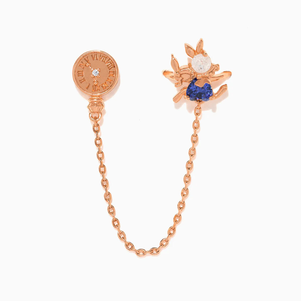 “I’m late! I’m late! For a very important date!” Are you always rushing around and running late? Meet your spirit animal, the White Rabbit from Disney’s classic animation Alice in Wonderland! Our enchanting Disney Alice in Wonderland White Rabbit Earring + Ear Cuff features a meticulously crafted clock stud and the charming white rabbit as an ear cuff, complete with his signature waistcoat and adorable expression.