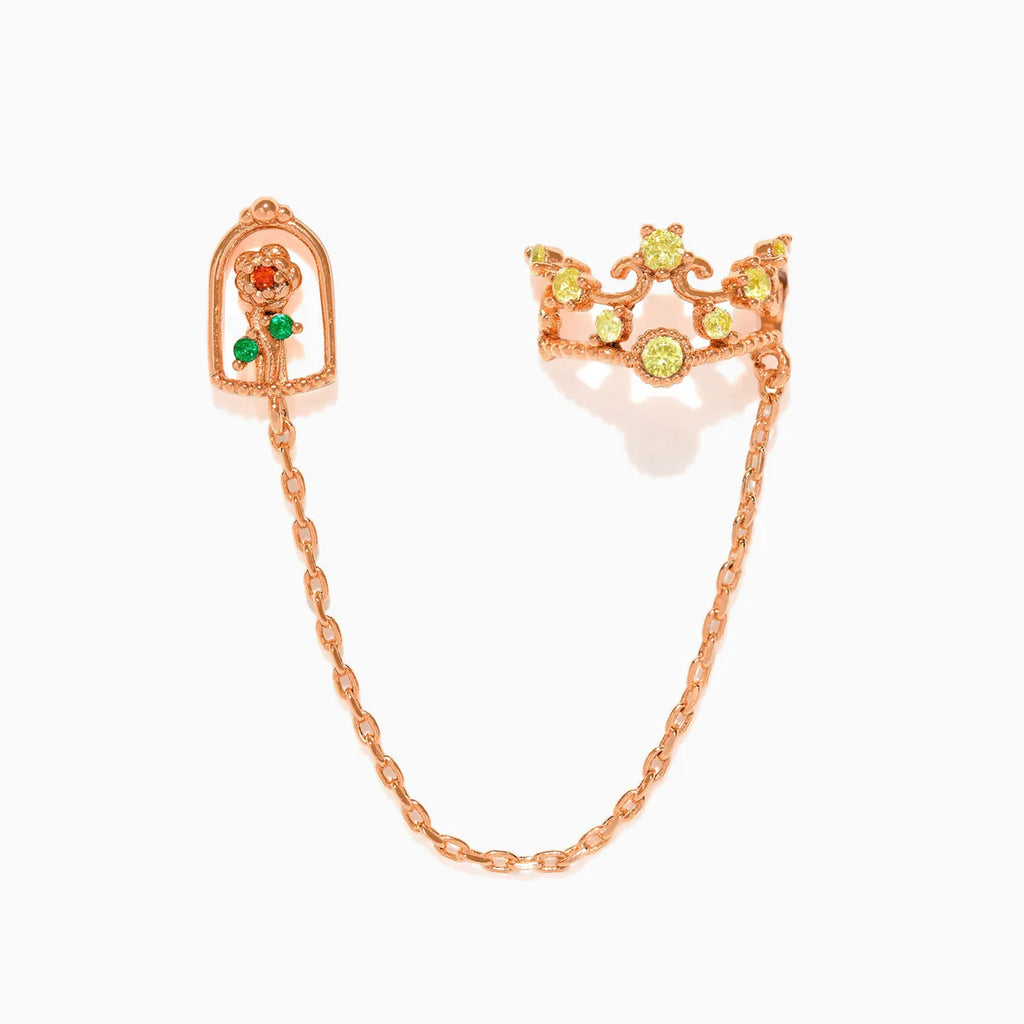 Bonjour! Experience the magic of Disney's Beauty and the Beast with this stunning ear cuff, elegantly connected to a charming rose stud. Our Disney Beauty and the Beast Enchanted Rose Ear Cuff + Stud captures the timeless romance and whimsical beauty of the beloved tale, making it a must-have for any occasion.