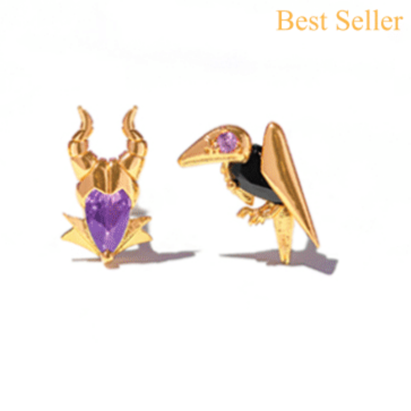 You do not want to sleep on these studs. Harness dark magic with the Disney Villains Maleficent Studs. Inspired by Disney’s Sleeping Beauty and the Mistress of Evil herself, our Disney Villains Maleficent Studs features intricate metal detailing and vibrant stones that bring Maleficent and Diablo the raven to life.