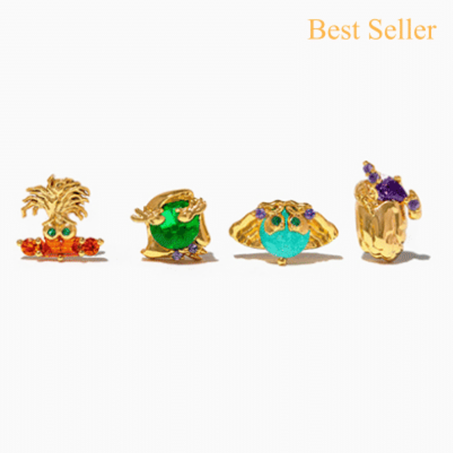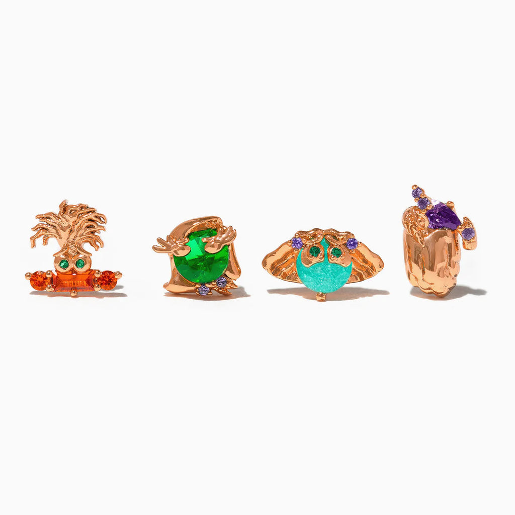 Ready to unpack some emotions? We already know and love our green gal, Disgust, but have you met her new colleagues? Our Pixar Inside Out 2 New Feelings Stud Set is inspired by Pixar's Inside Out 2 and features the emotional characters Anxiety, Ennui, Envy, and Disgust. These colorful characters are brought to life with vibrant cubic zirconia stones and intricate metal detailing. Add these to your jewelry collection today!