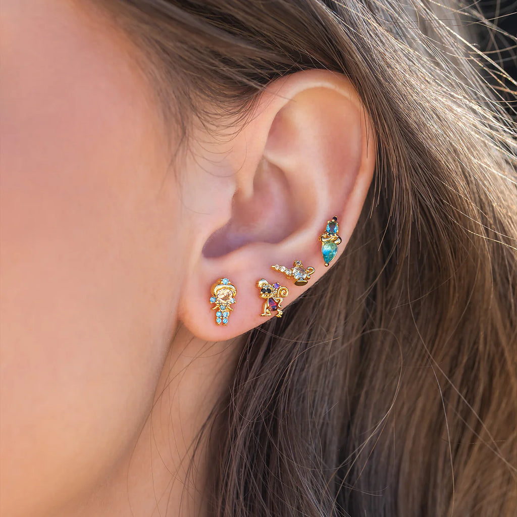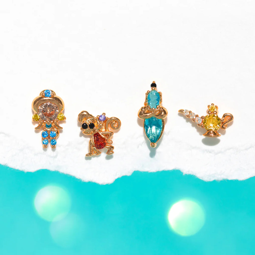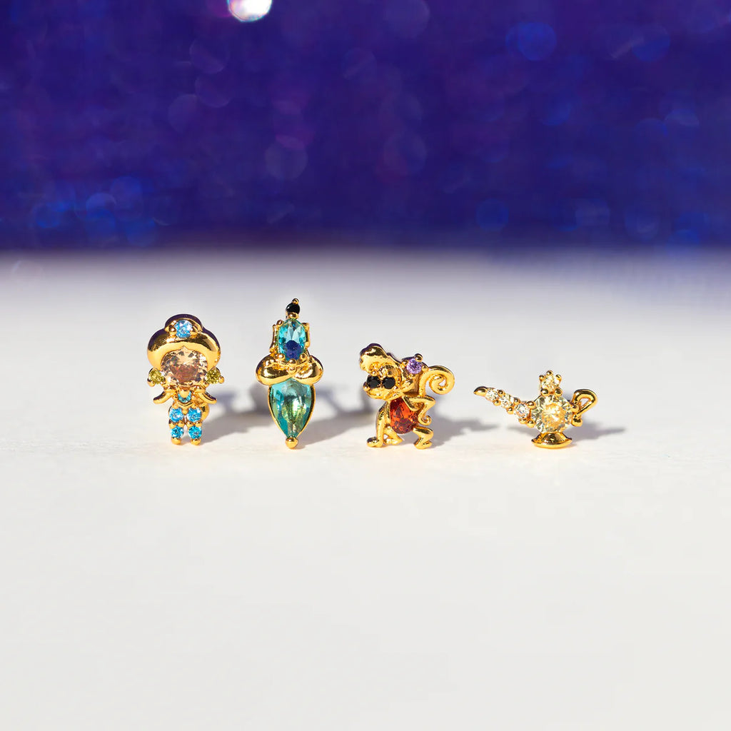 Get whisked away to the land of Arabian nights in the Disney Princess Jasmine Earring Set! Embellished with vibrant and mesmerizing stones, this set features some of your favorites including, Princess Jasmine, Aladdin's friend Abu, the Genie, and his lamp of course! Unlock a whole new world in this set!
