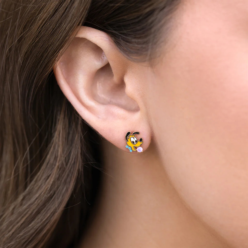 Embrace the playful charm of Disney's lovable Pluto with these exquisite studs. Featuring Pluto holding a ball with his mouth, these earrings capture his endearing personality in every detail. Crafted with exquisite attention to detail, these Pluto studs are made with high-quality materials that ensure durability and long-lasting wear. Order now and experience the magic of Disney's lovable pal for yourself.