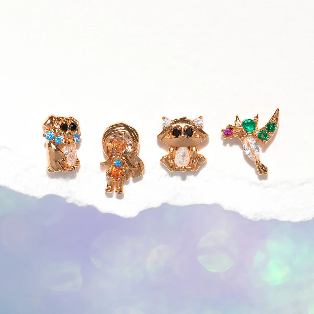 Your next favorite earring stack is just around the riverbend! Our Disney Princess Pocahontas Earring Set pays tribute to Pocahontas, the courageous member of the Powhatan tribe and her friends Flit, Meeko, and Percy--all adorned in an array of vivid and lustrous stones.