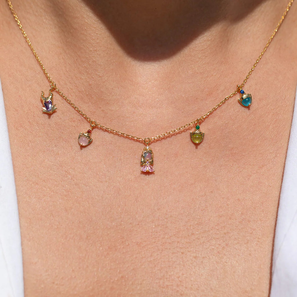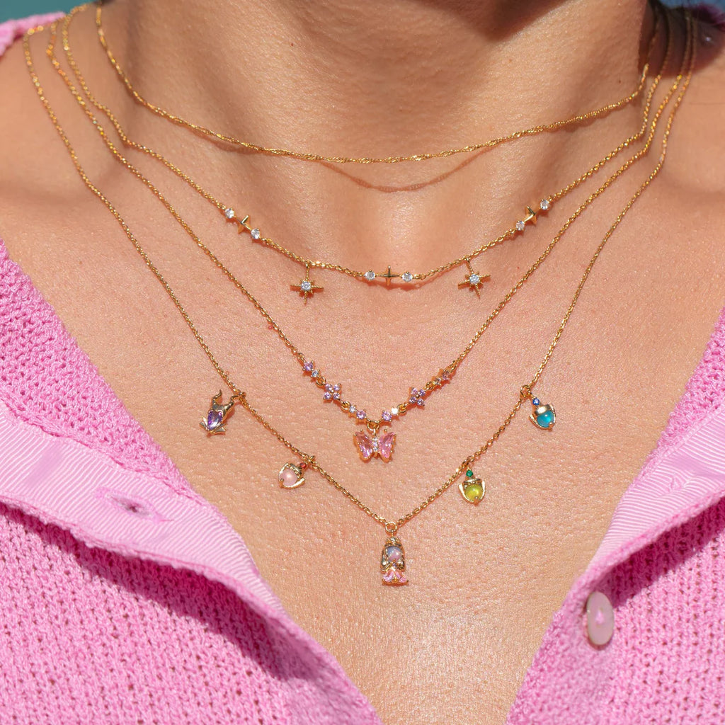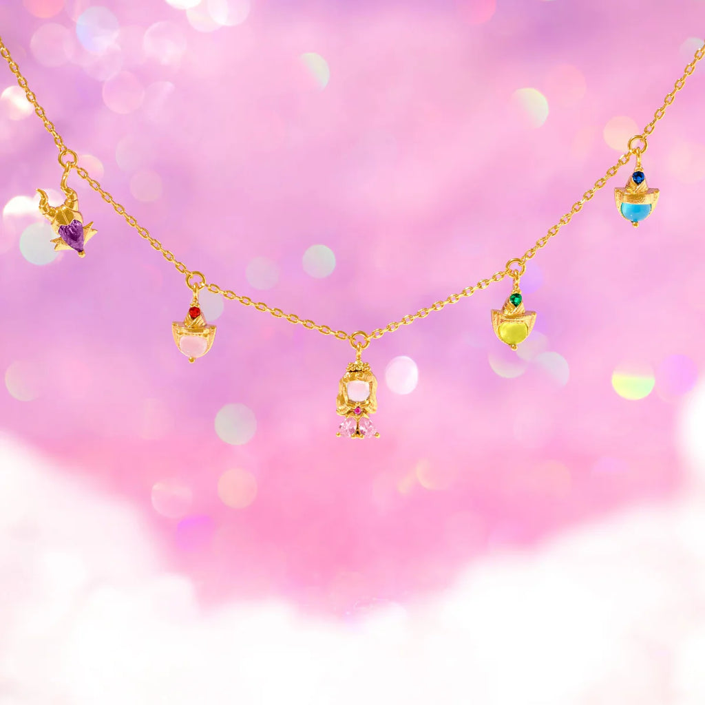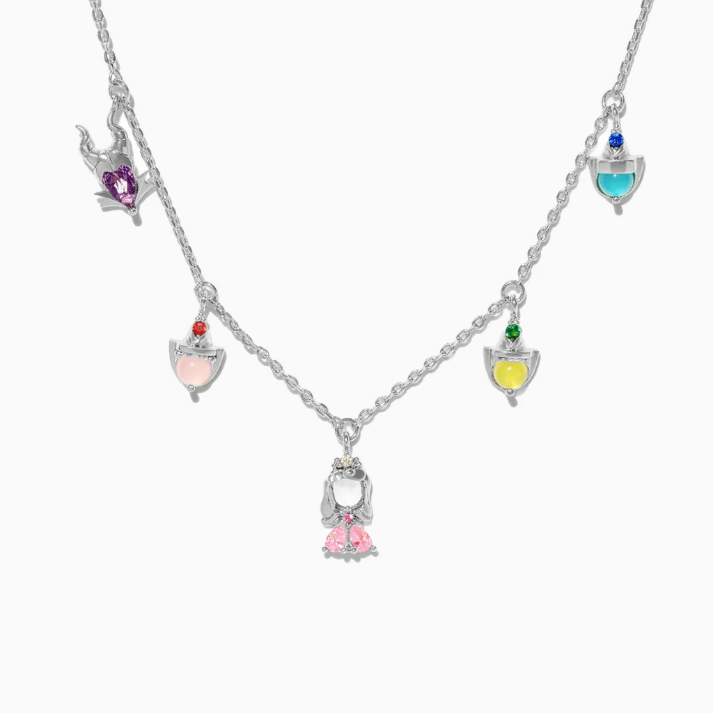 They say if you dream a thing more than once, it's sure to come true... and here it is! Our Disney Princess Sleeping Beauty Necklace features Princess Aurora in her signature pink gown alongside her three fairy godmothers, Flora, Fauna, and Merrywheather, and Maleficent. This necklace is expertly crafted and full of color. Don't sleep on this dreamy piece and let the magic slip away.