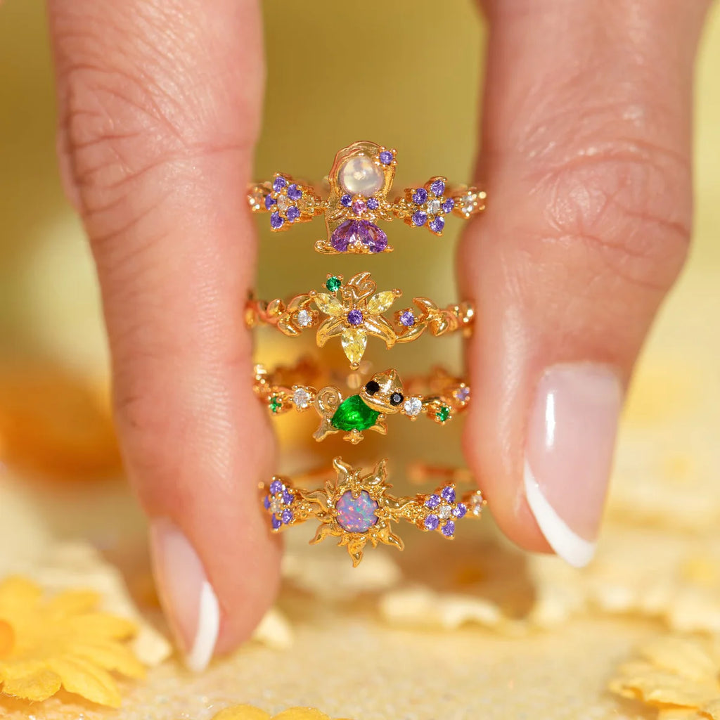 Take a lick out of life with our Disney Tangled Pascal Ring. Inspired by Disney's Tangled, this charming design features a playful green Pascal, capturing the mischievous spirit of Rapunzel’s beloved sidekick. Celebrate friendship with this ring and add it to your enchanting collection today!