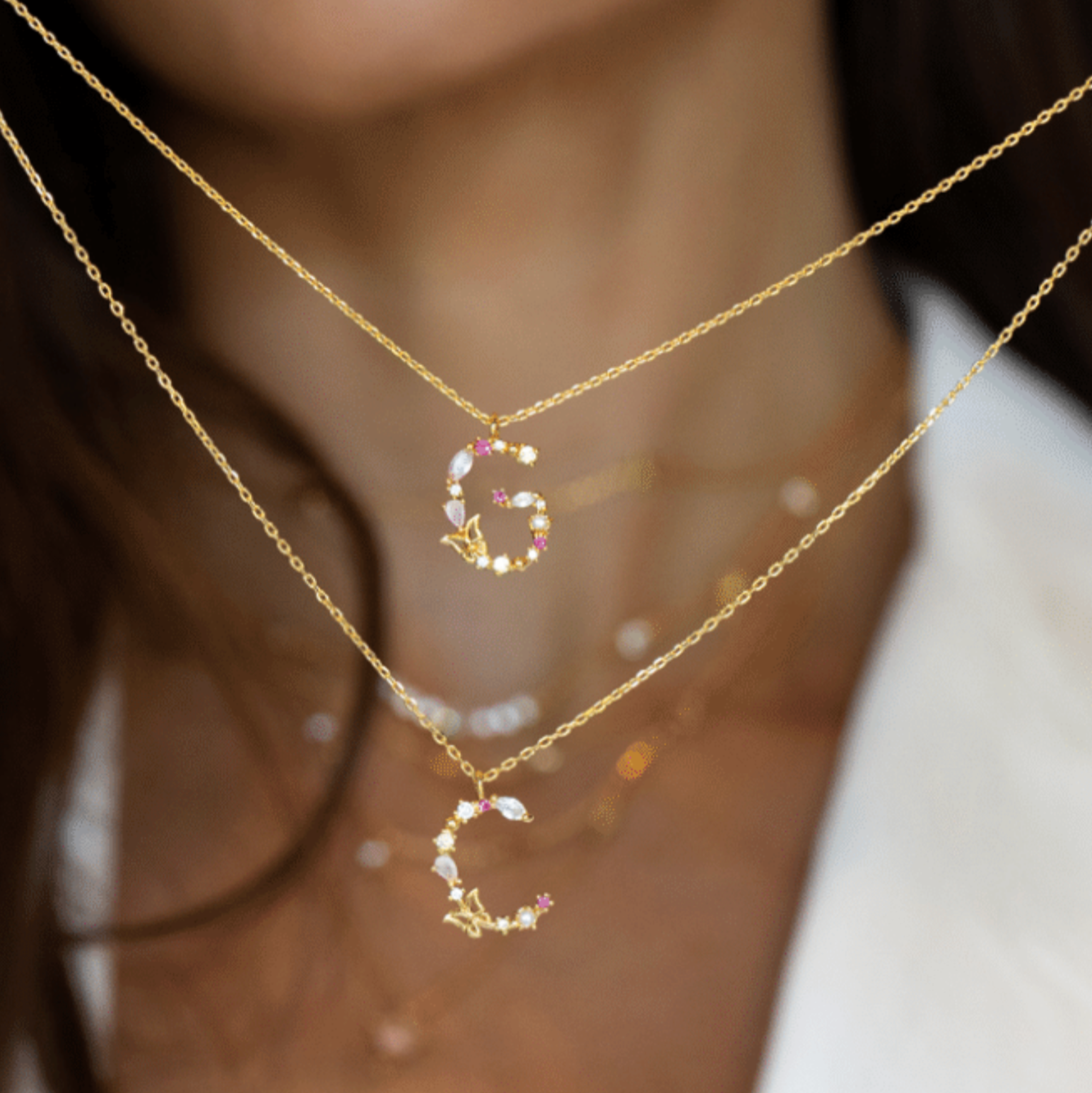 Girlscrew - Necklaces - Flutterfly Stone Initial Necklace