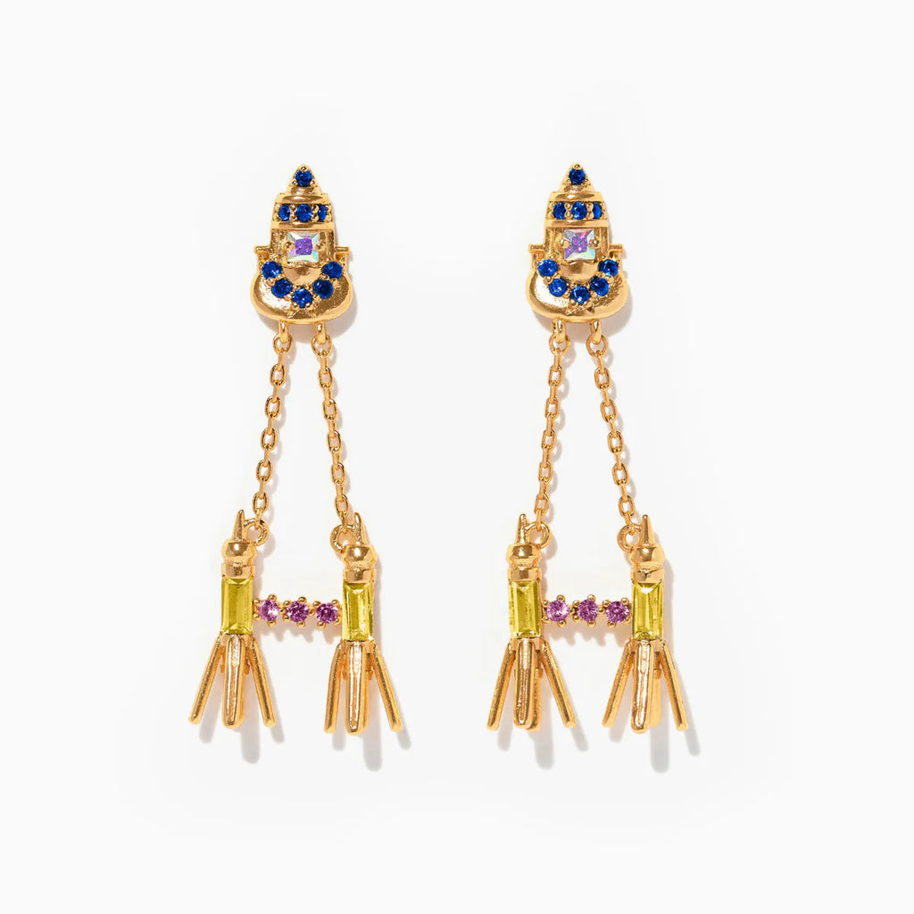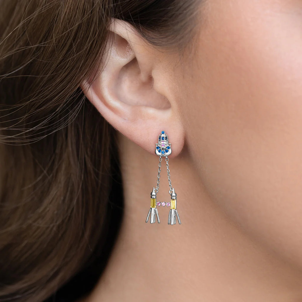 Ignite your passion for Star Wars™ with our Anakin Skywalker's™ Podracer Dangle Earrings! These stunning earrings features Anakin's iconic Podracer, complete with an iridescent stone, rocket motors, and a dangling chain. Embrace your love for the Mos Espa Circuits with this playful accessory.