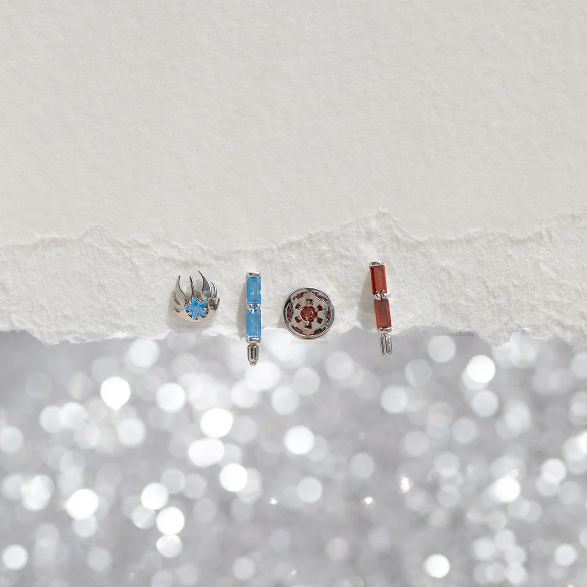 It's time to decide where your allegiance lies: do you champion peace and justice, or do you lean towards deception and greed? The Star Wars™ Choose Your Side Stud Set brings together elements depicting the light side and the dark side with highlighting the Rebel Alliance and Galactic Empire insignias along with lightsabers of the Jedi™ and Sith™. It's up to you, which side you'll choose to rep your galaxy.