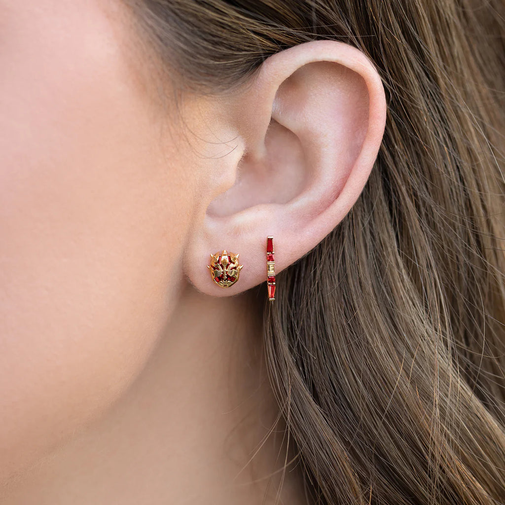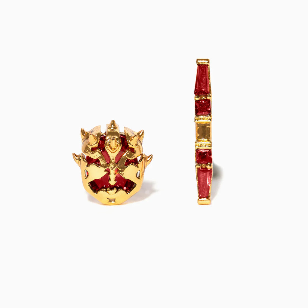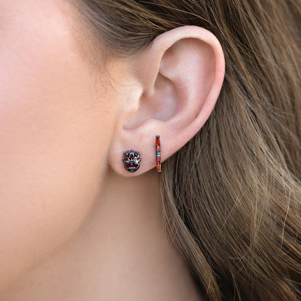 Show your allegiance to the dark side with our Star Wars™ Darth Maul™ Studs. Embrace the sinister allure of Darth Sidious' apprentice with these striking studs, showcasing Darth Maul in a vibrant red stone adorned with his iconic horns and facial markings. Paired with his red dual Lightsaber™, featuring captivating stones that enhance your lethal aura, these studs are a symbol of your unwavering resolve