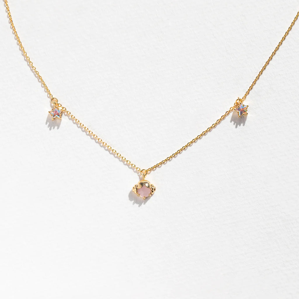 The Star Wars™ Princess Leia™ Charm Necklace honors the fearless, hopeful, and beautiful leader of the Rebel Alliance! The center pink stone gives it a feminine touch, and the metal detailing recreates her iconic style.