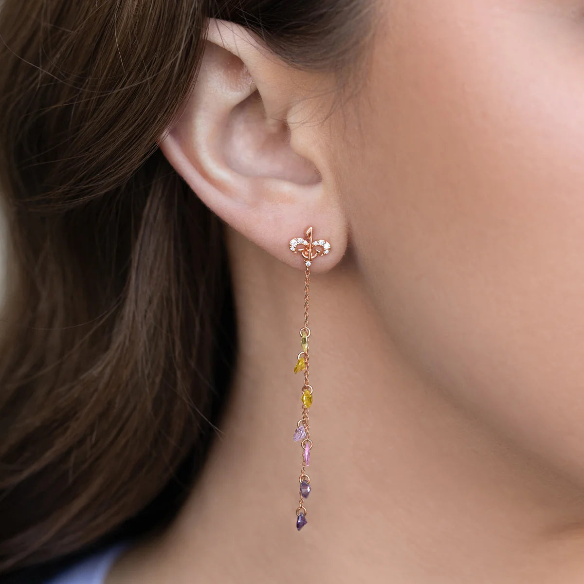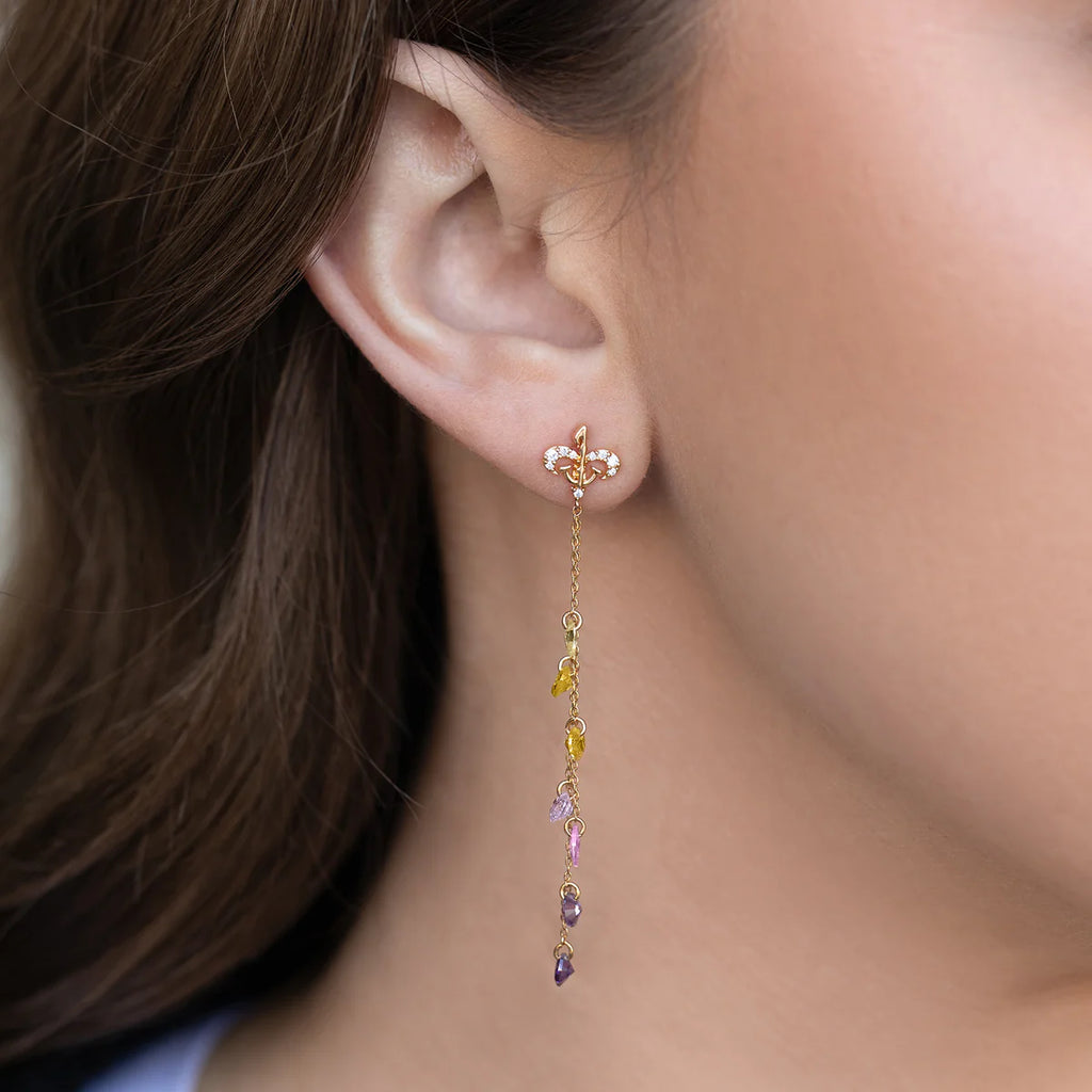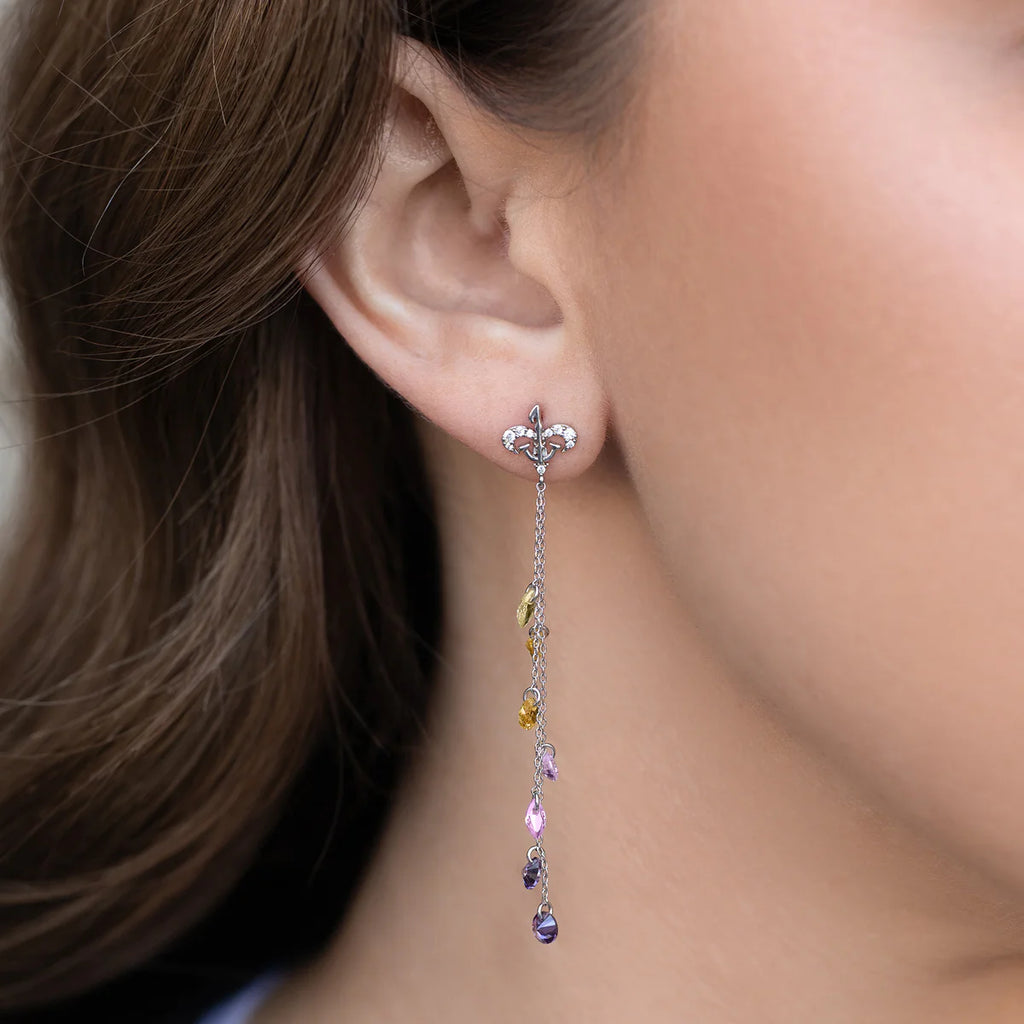 Bask in the presence of royalty with our Star Wars™ Queen of Naboo™ Dangle Earrings. Inspired by Padmé Amidala, the queen-turned-Senator, these earrings capture regal elegance. A Naboo insignia stud is complemented by dangling ombré stones, transitioning from lush yellow to royal purple, reminiscent of Padmé's lakeside dress. Experience the essence of royalty with these exquisite earrings.