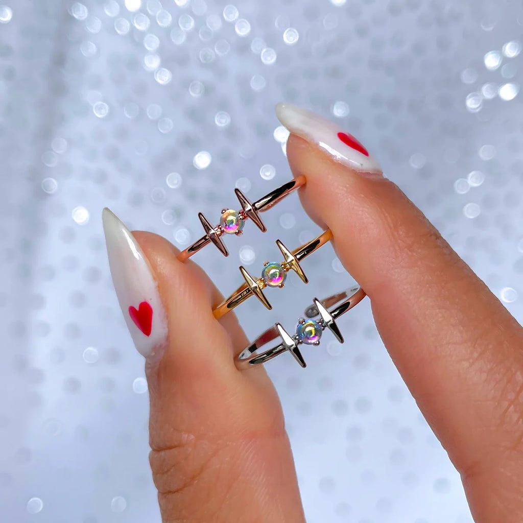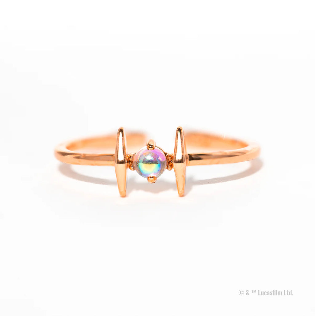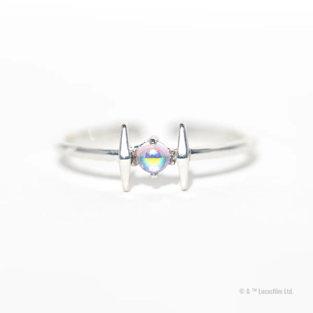 Want to amaze all of your enemies? Wear the Star Wars™ TIE Fighter™ Ring to strike fear into anyone that crosses you. This ring features a pearlescent center stone that reflects a kaleidoscope of colors.