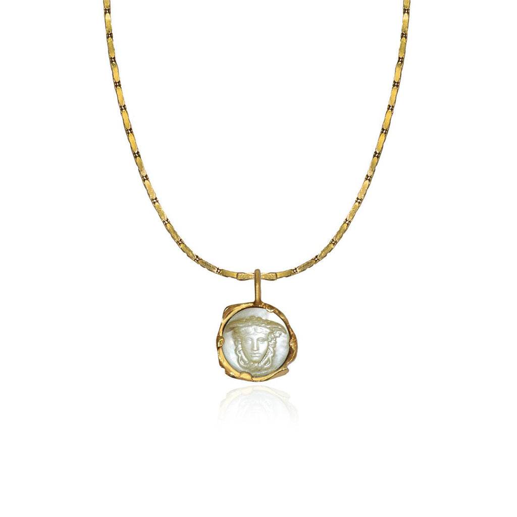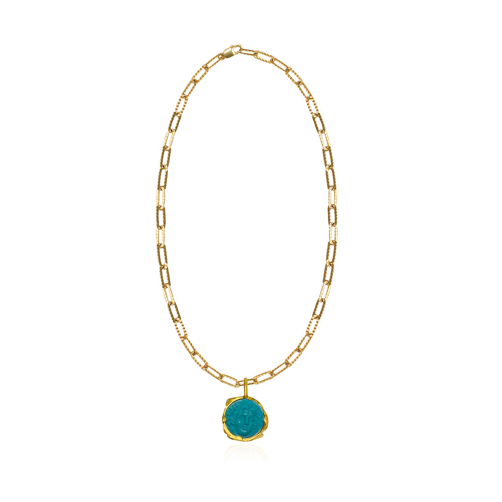 Konstantina creates jewellery with the idea that every piece is timeless and can be passed down through generations. Her designs illustrate her passion for history and culture, taking inspiration from Antiquity and Greek mythology. She loves experimenting with different textures and giving them a vintage impression by using “old fashioned” chains. Every piece in every collection is completely unique.