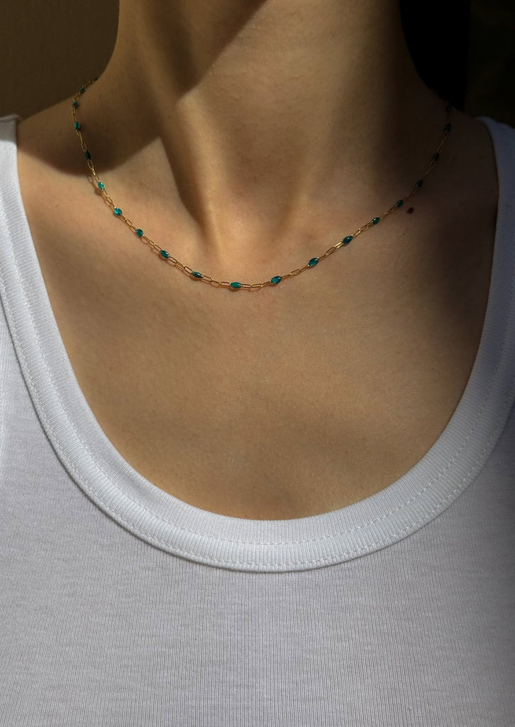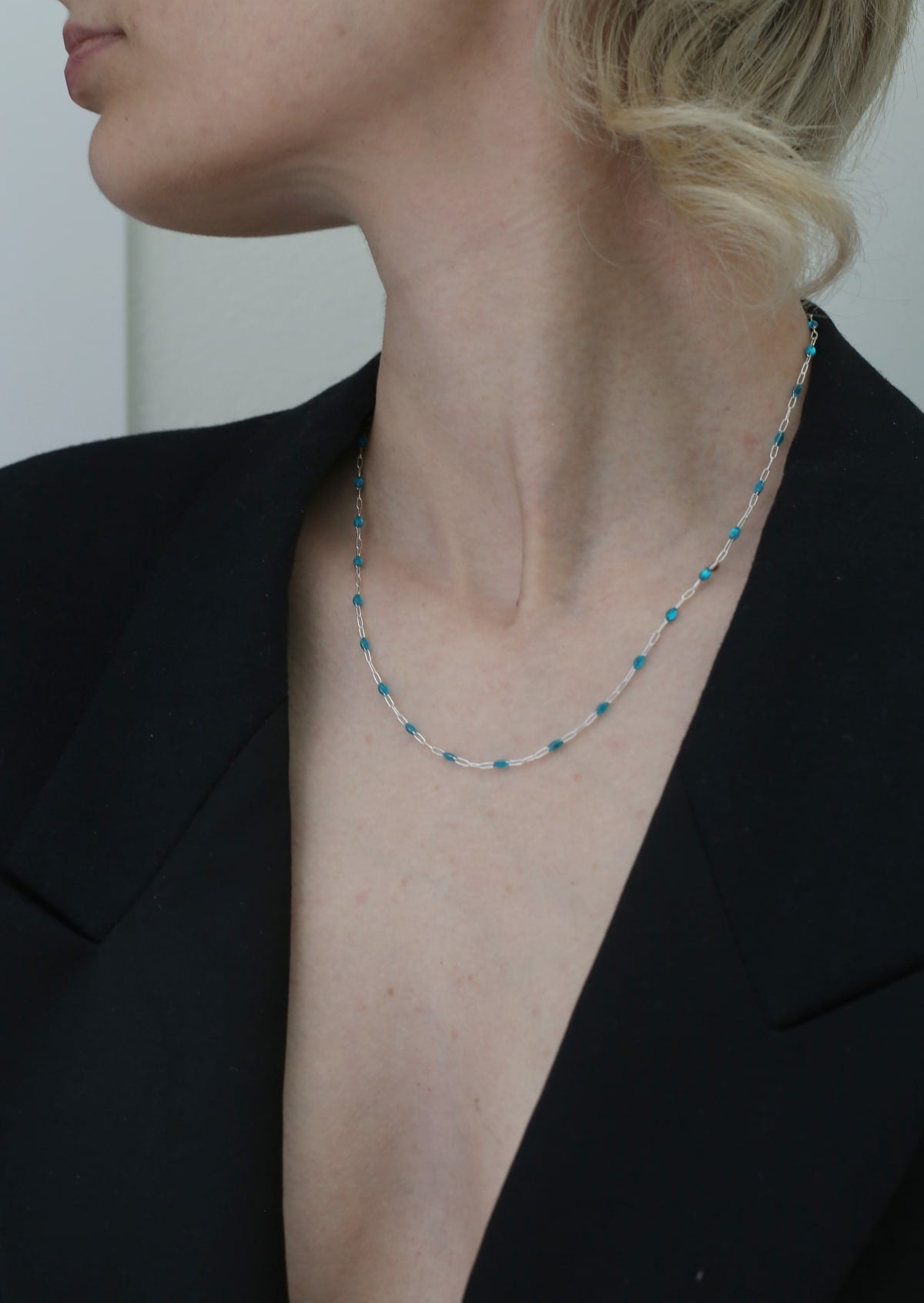 HERMINA ATHENS - TURQUOISE ENAMEL CHAIN 50CM - GOLD OR SILVER