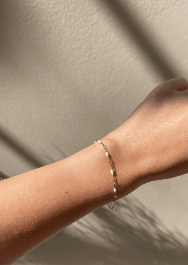 HERMINA ATHENS - PEARLY WHITE ENAMEL CHAIN BRACELET - GOLD OR SILVER