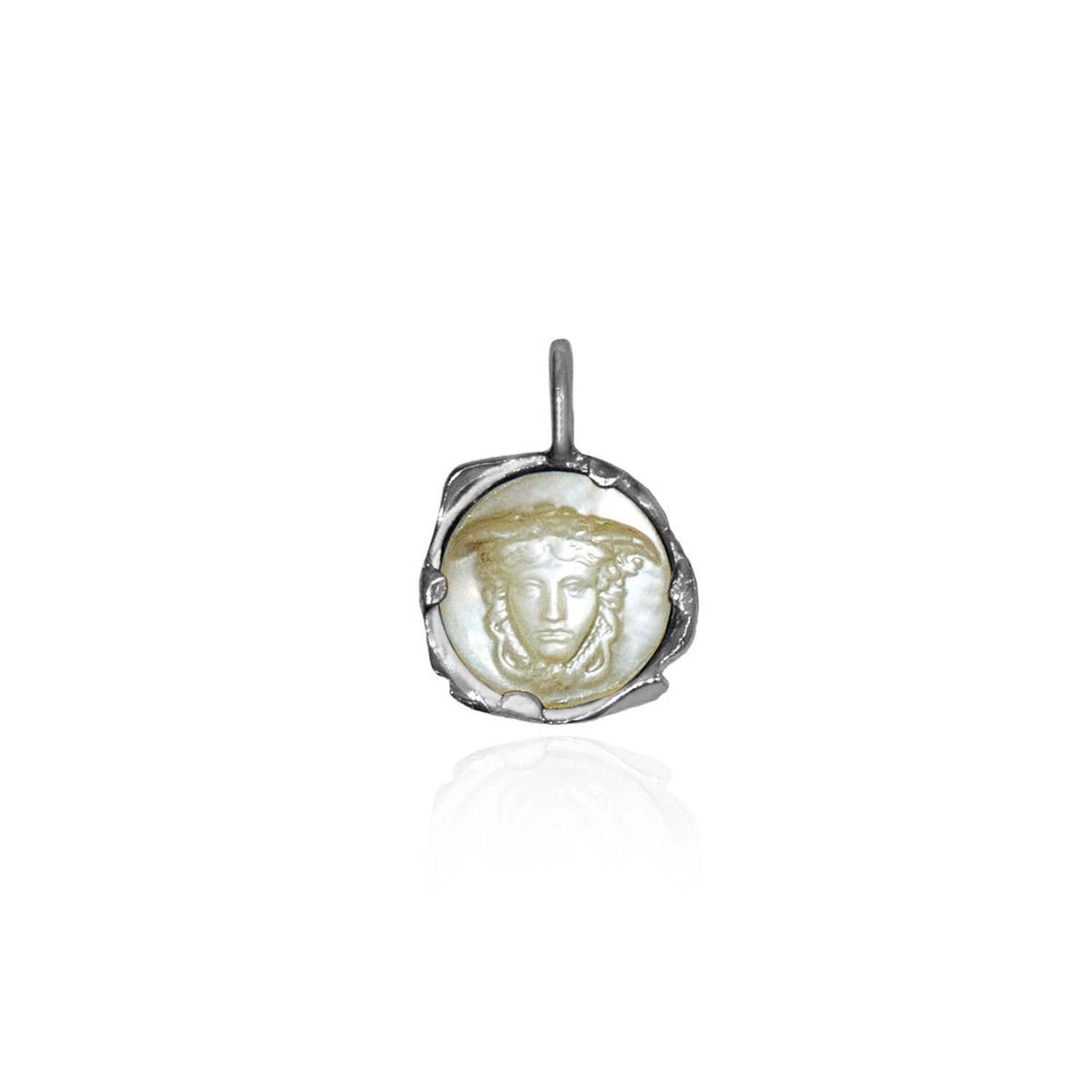HERMINA ATHENS - NEW - Medusa Cameo Pearl Charm - Silver