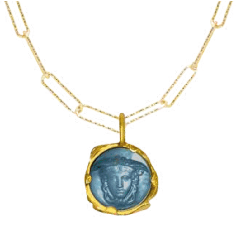 HERMINA ATHENS - NEW - MEDUSA CAMEO SILICA DIAMOND CUT CHAIN - GOLD