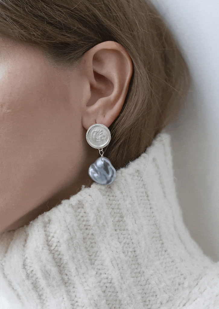 HERMINA ATHENS - HERCULES BAROQUE PEARL EARRINGS - SILVER