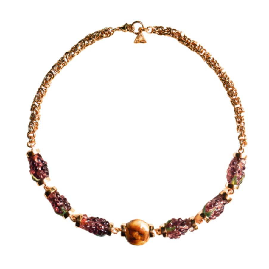 Materials: Hand made porcelain, gold plated bronze, glass, natural stones, gems. (Unexpected materials)