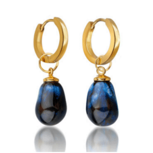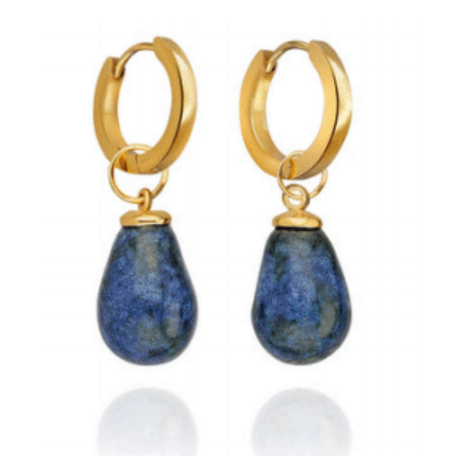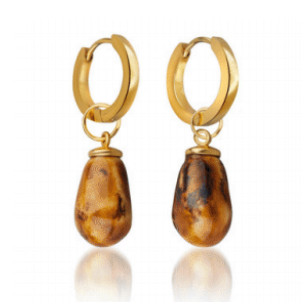 22K Gold Plated earring with hand sculptured porcelain drops hanging.