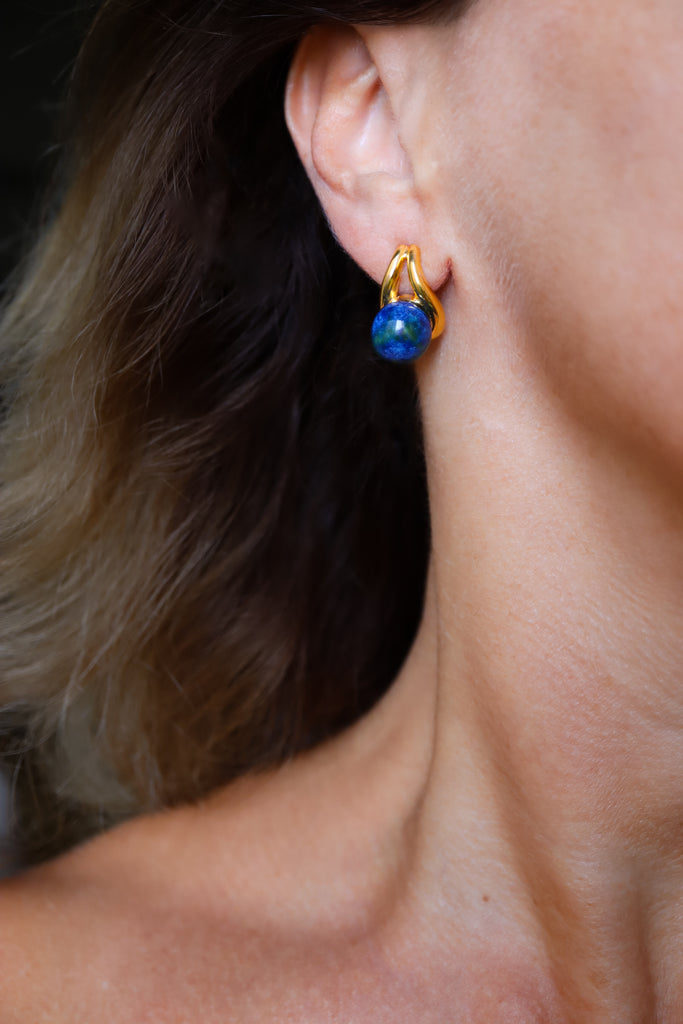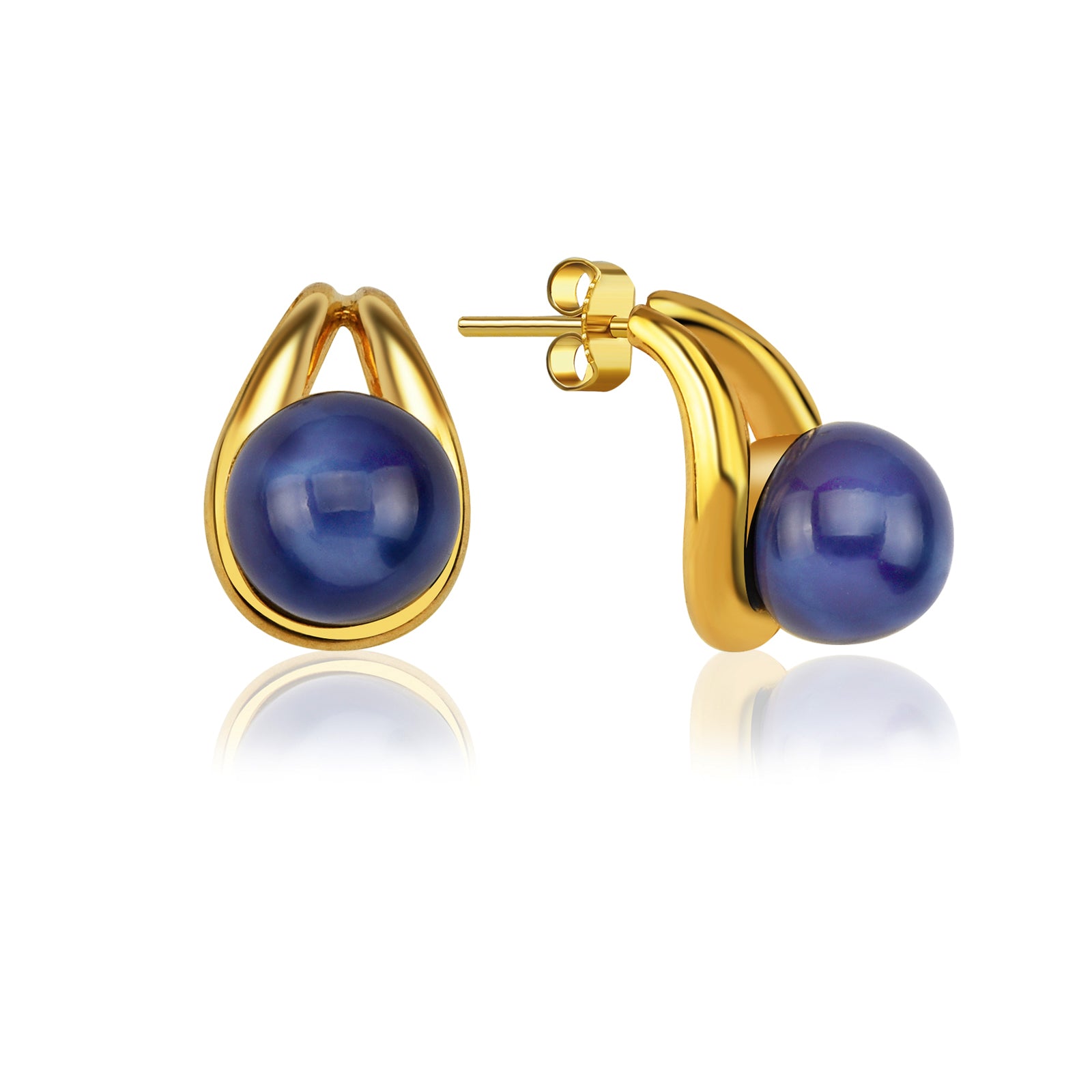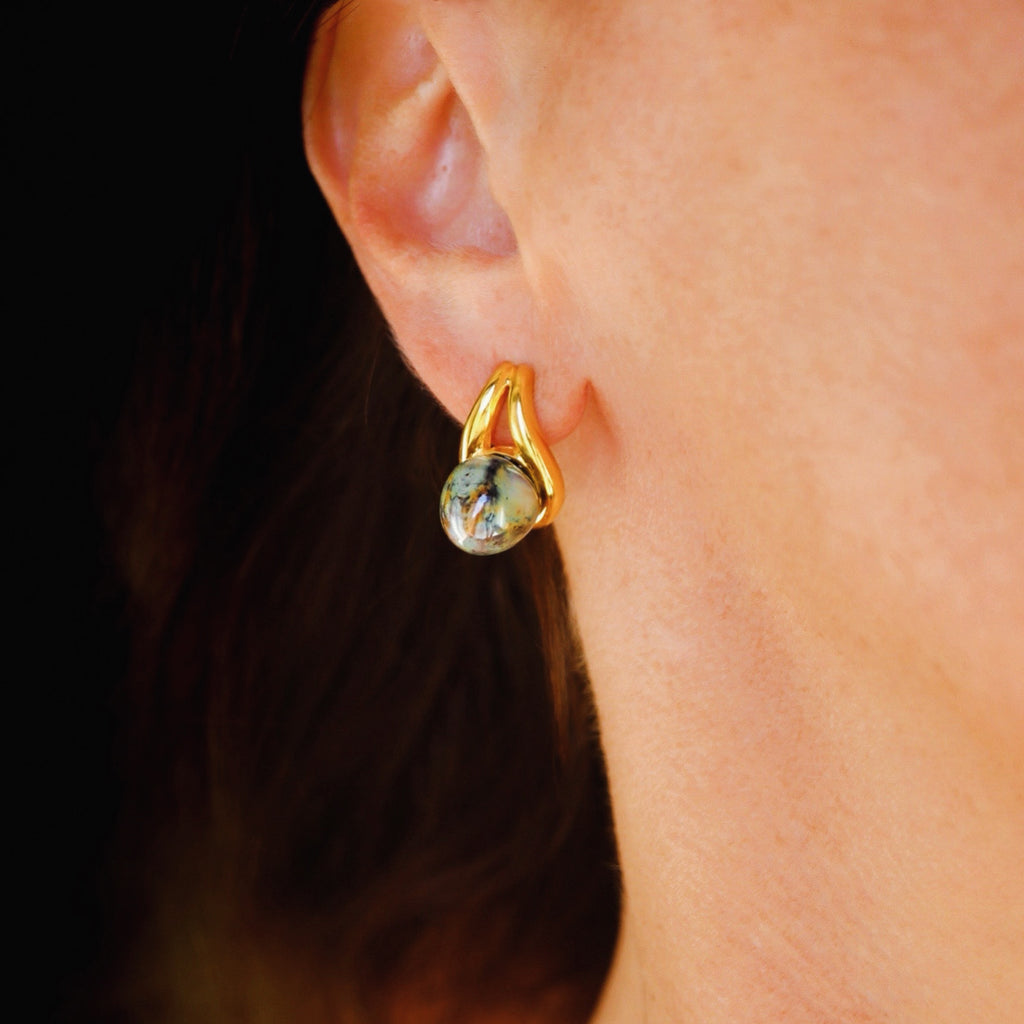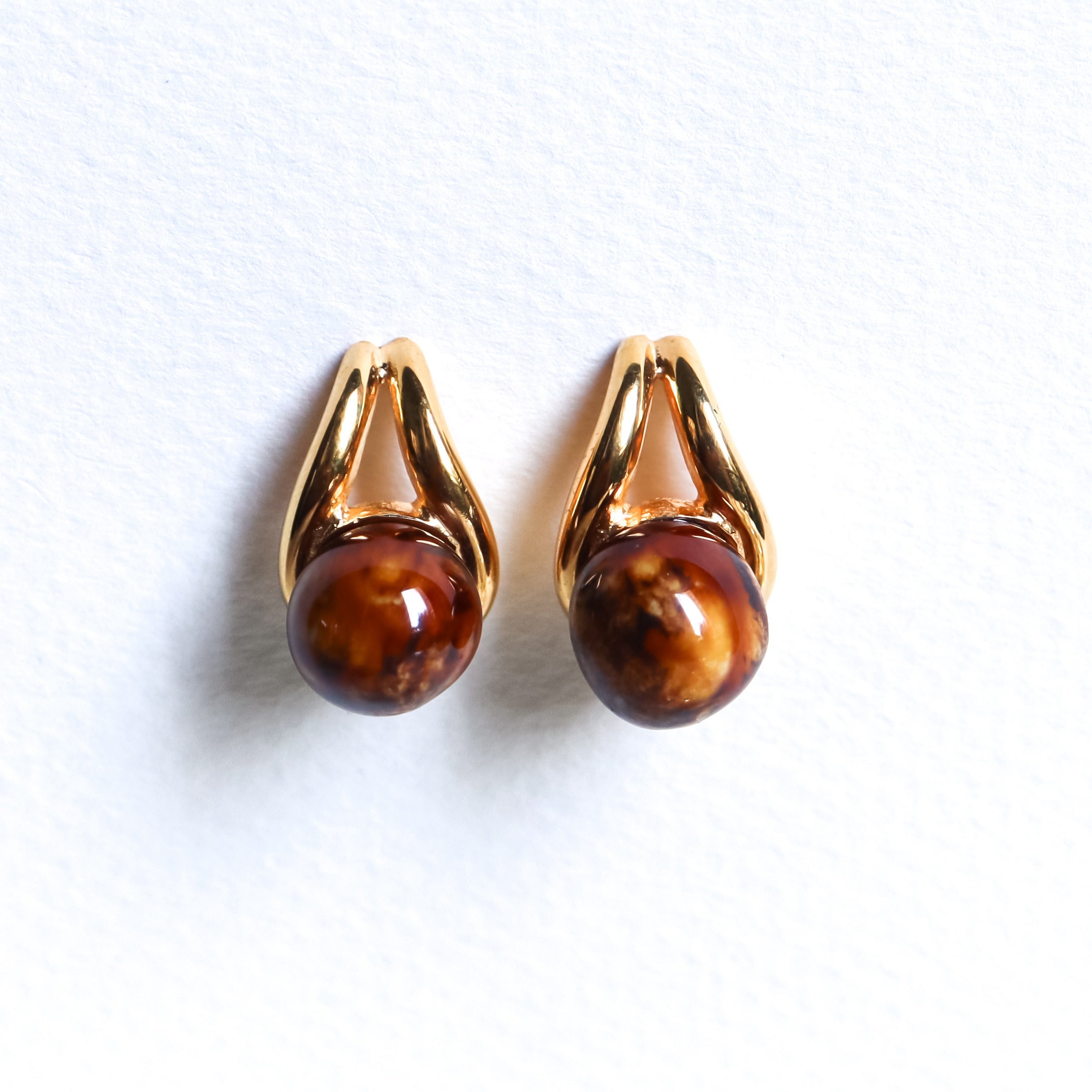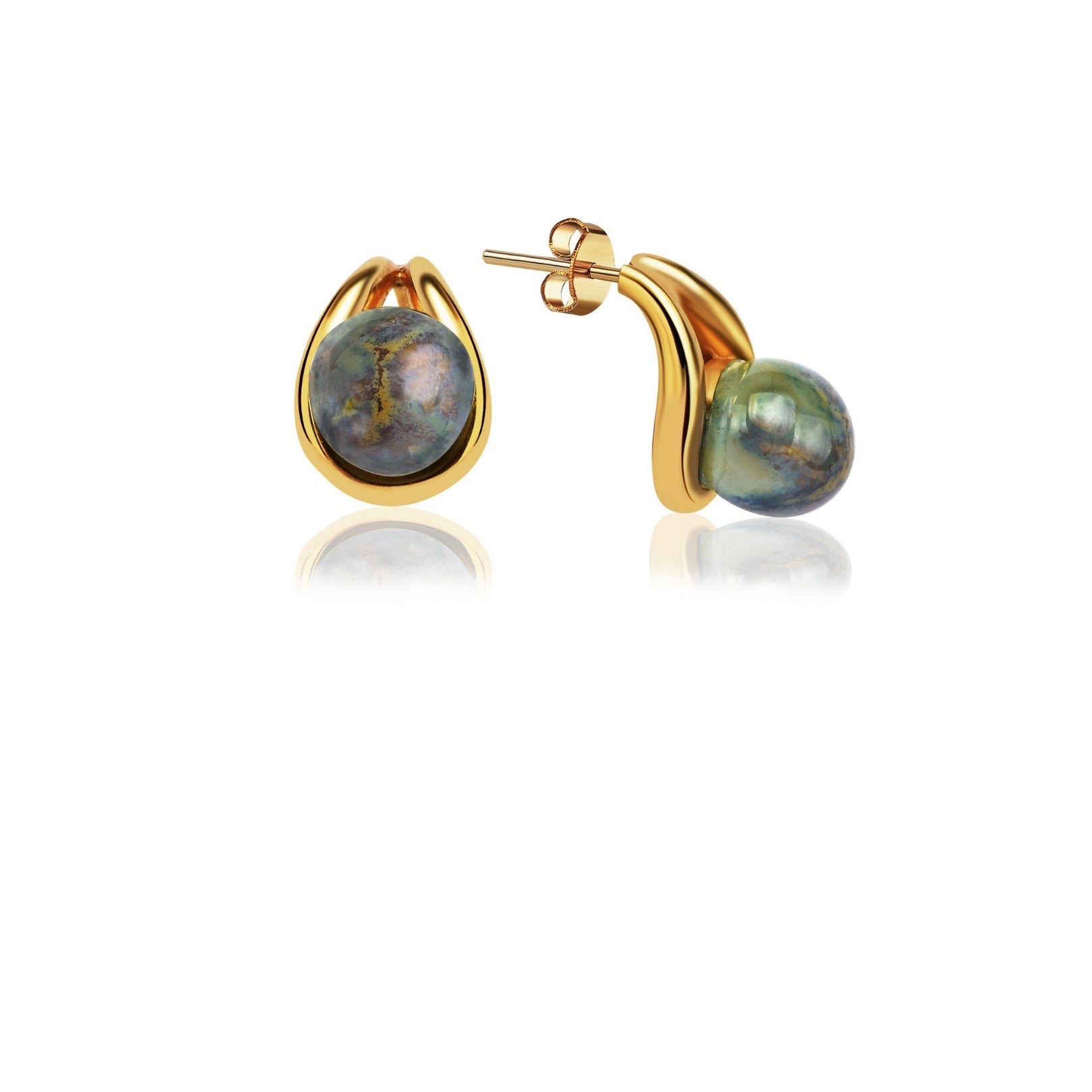 22k Gold Plated loop shape stud with handmade porcelain balls attached.