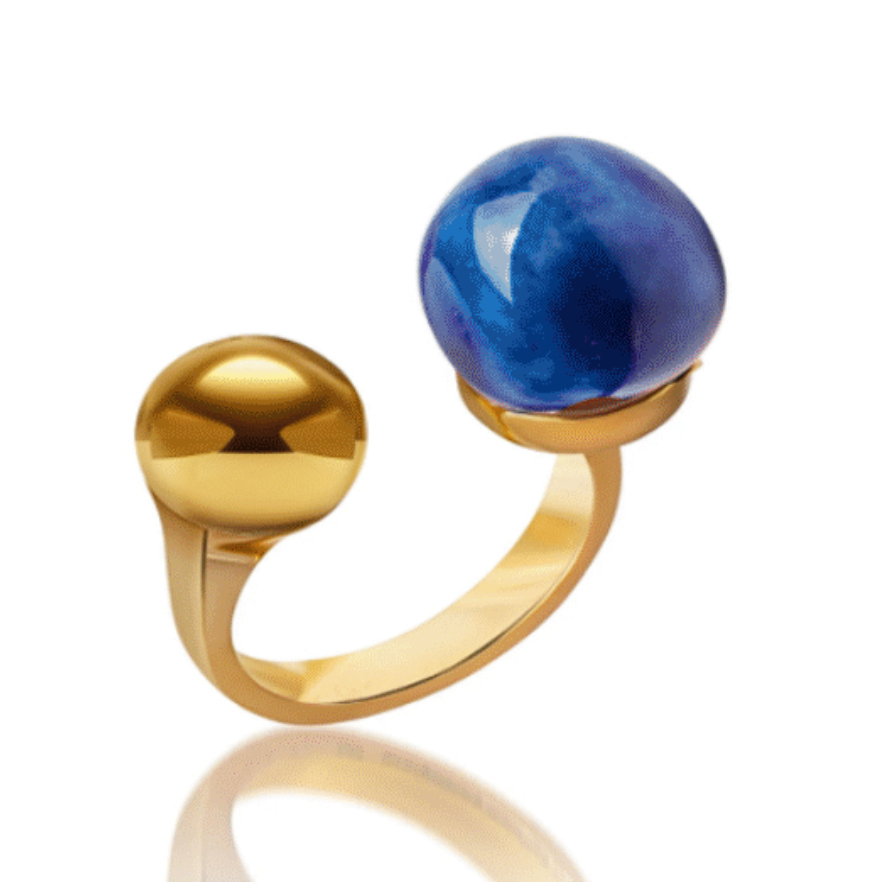 22k Gold Plated ring with hand sculptured porcelain ball