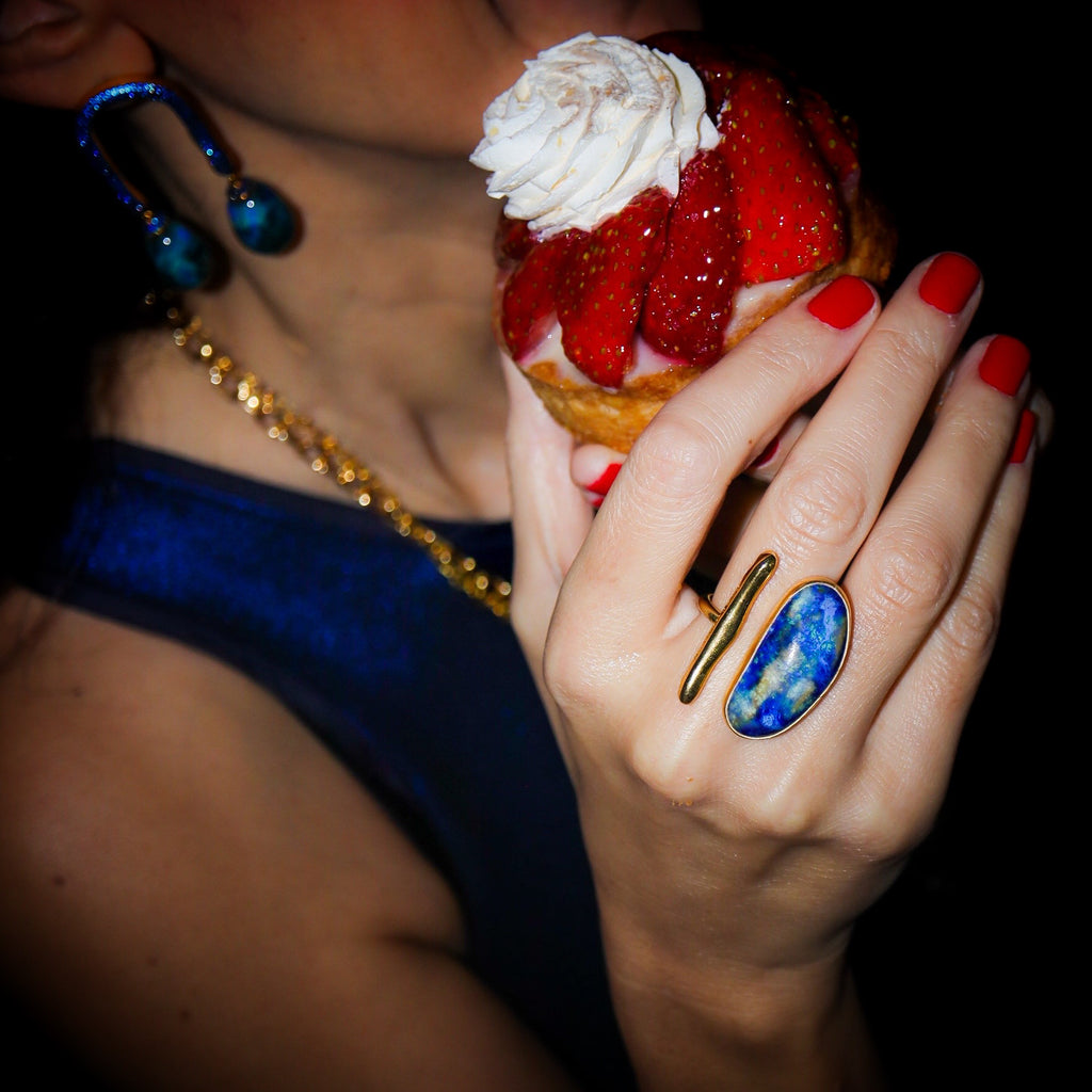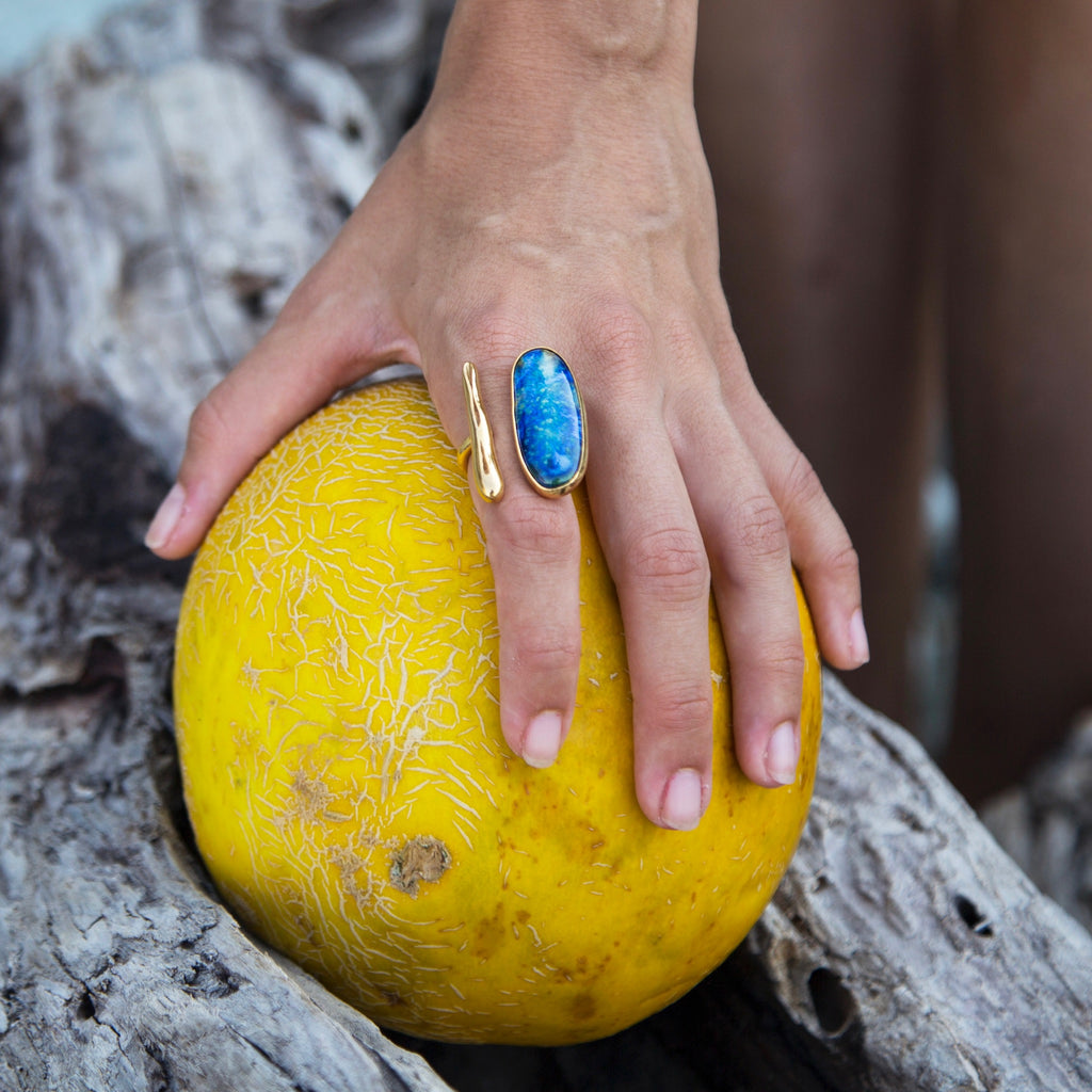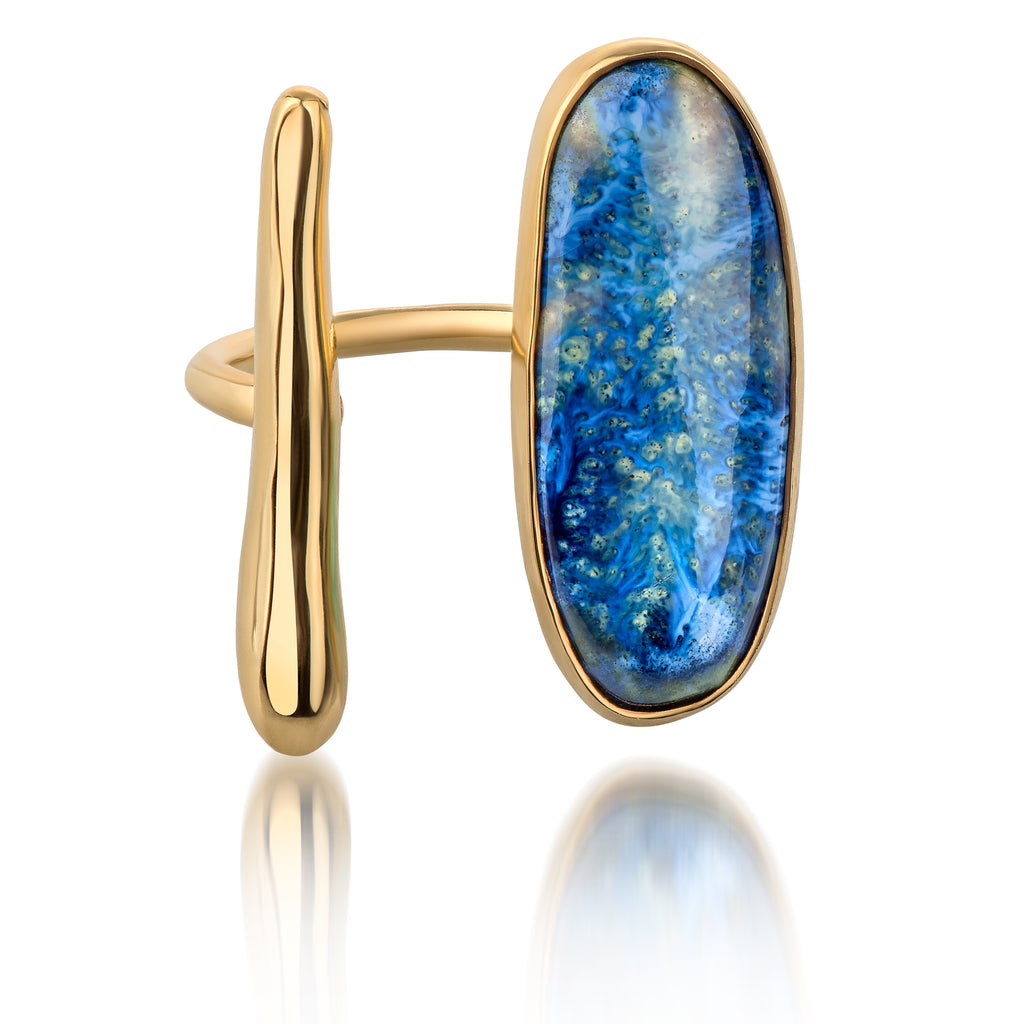 22K Gold Plated Ring set with hand sculptured porcelain.