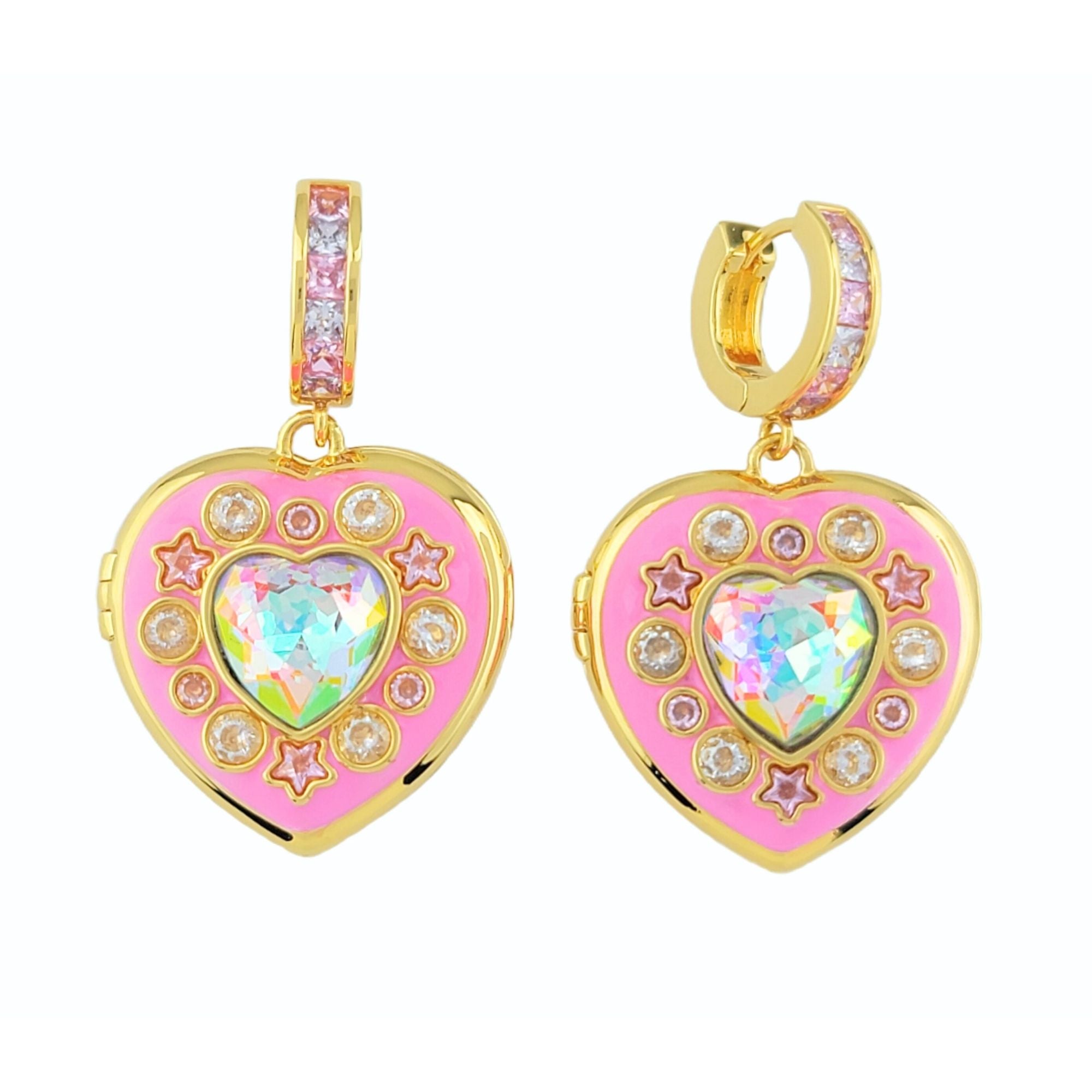 18k Gold Plated Stainless Steel, Enamel and Cubic Zirconia Stones