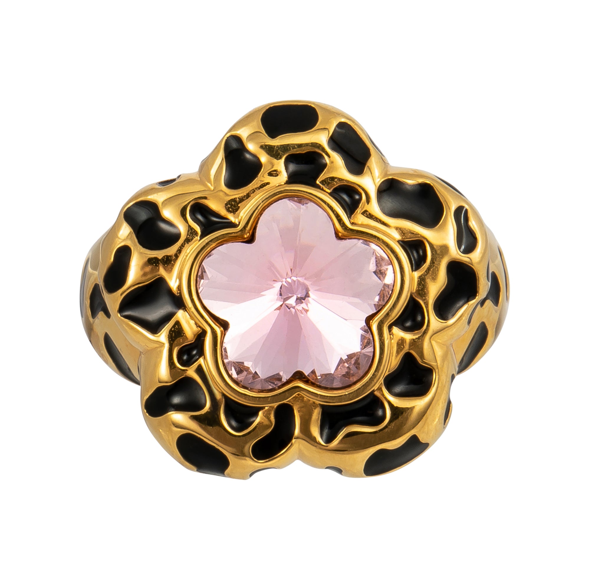 18k Gold Plated Stainless Steel with Enamel and Cubic Zirconia Stones