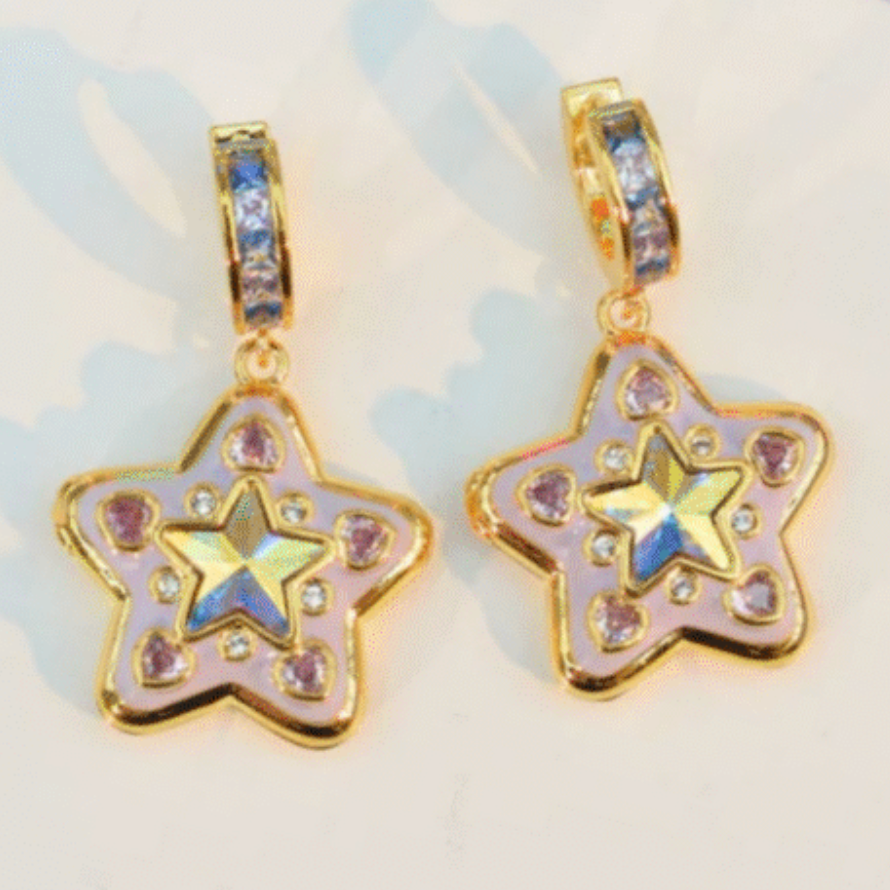 July Child - Signature Styles - Lilac Starlight Locket Earrings - Gold