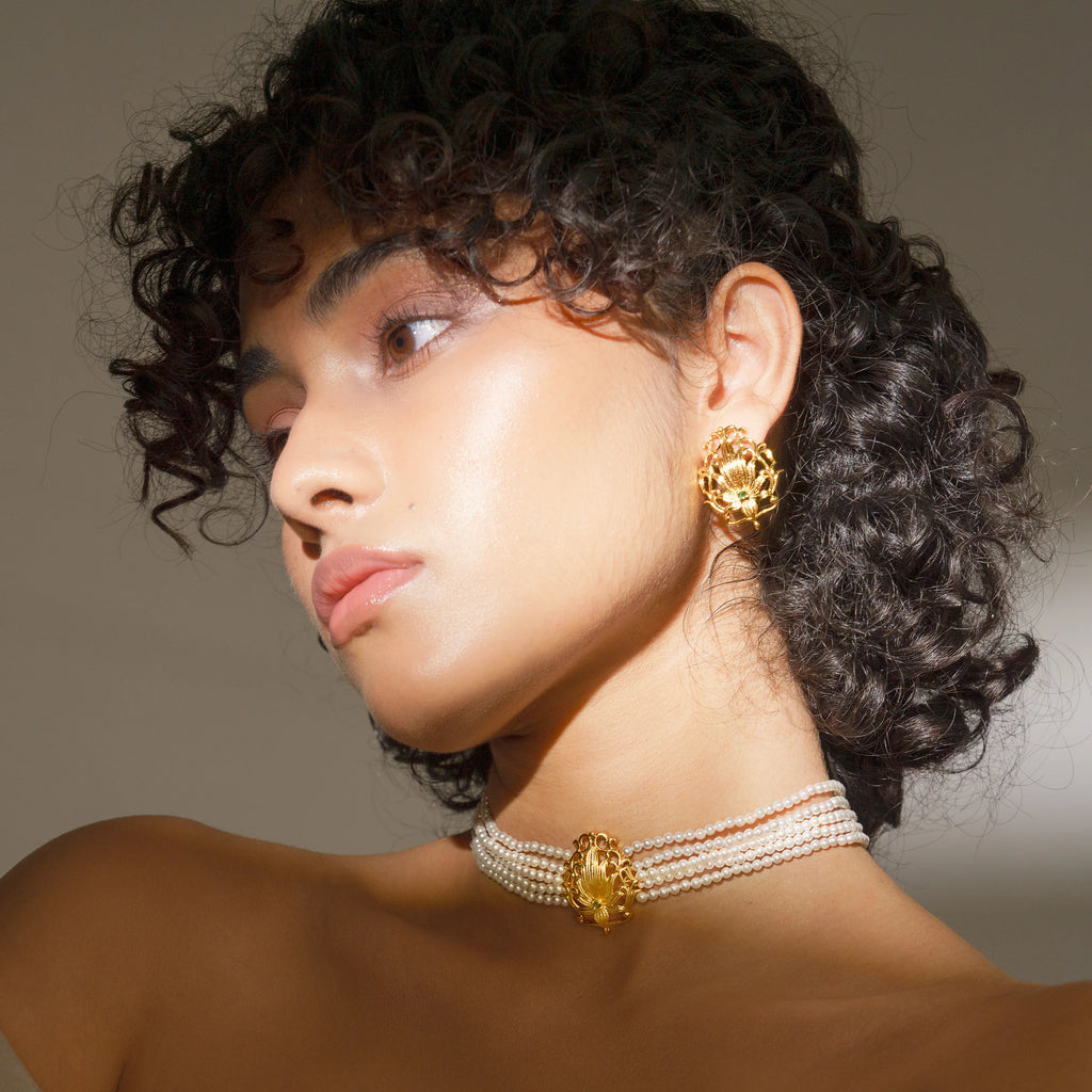 LYNYER - LOTUS COLLECTION - LOTUS PEARL CHOKER GOLD