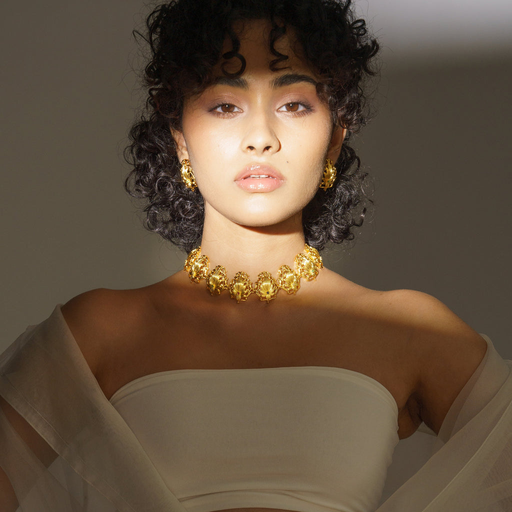 Our custom plating technique binds real 24 karat gold to the base non allergic metals ensuring all pieces look and feel amazing.