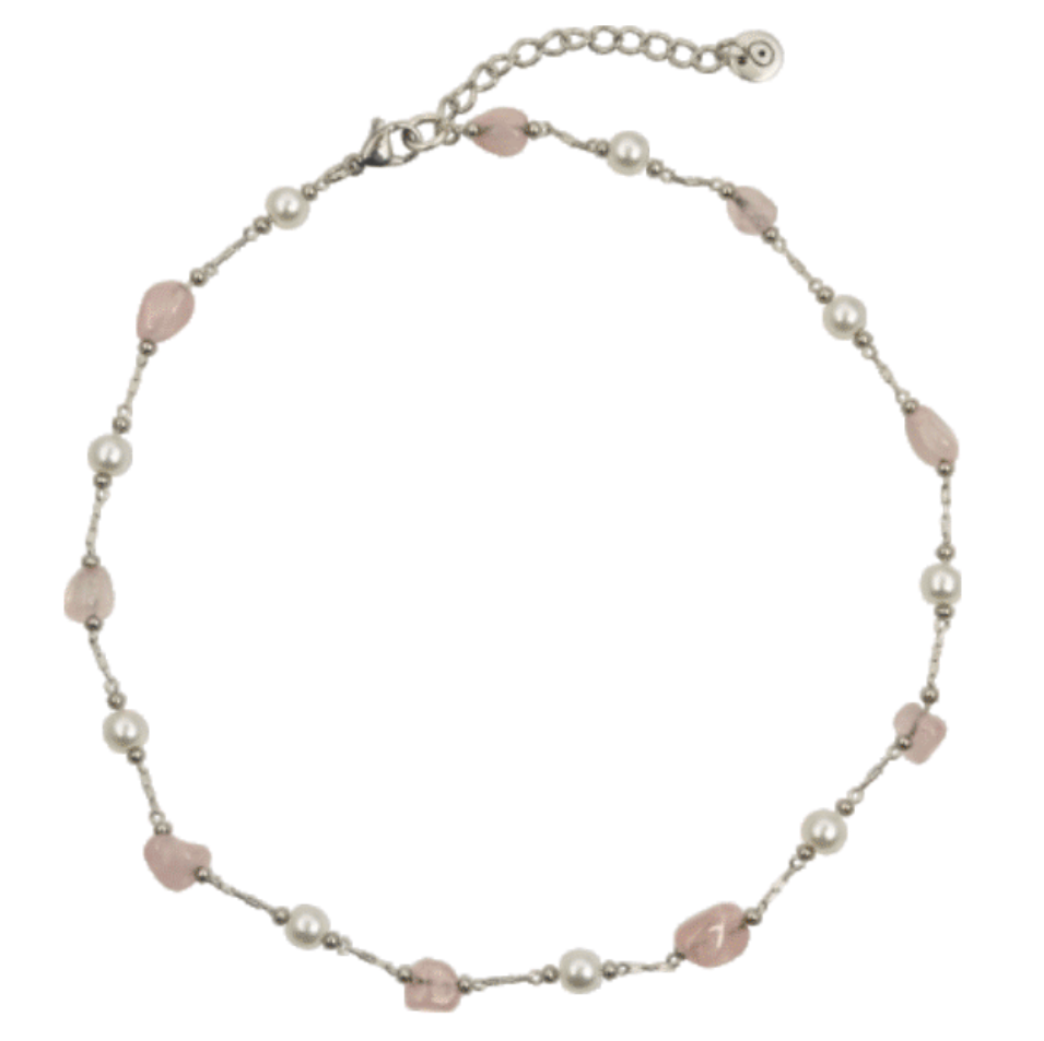 Silver Plated Stainless Steel Chain, Freshwater Pearls and Semi Precious Time