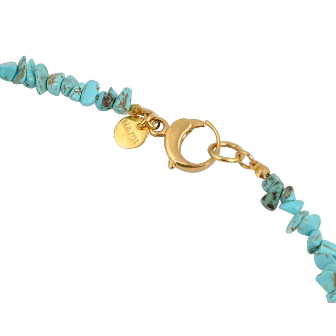 24k Gold Plated Brass Pendant, Dolphin Shaped Stainless Steel Clasp and Turquoise Charoite Chips