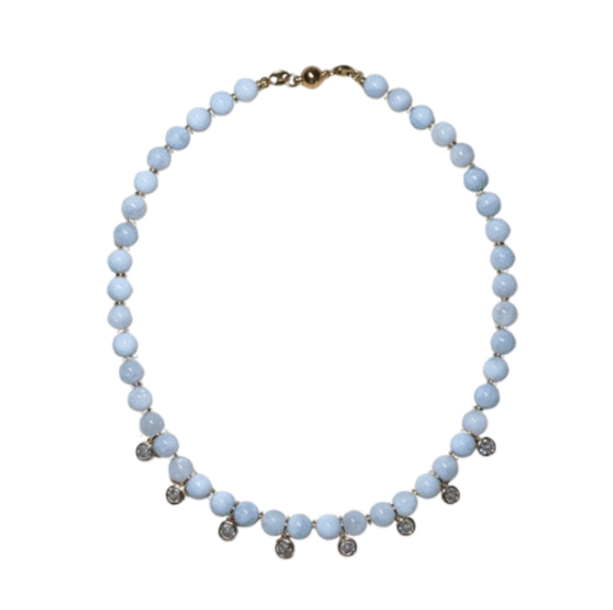 Natural Chalcedony, Cubic Zirconia, Gold Plated Beads, Thick Gold Plated Beads, Thick Gold Plated Stainless Steel Magnetic Clasp