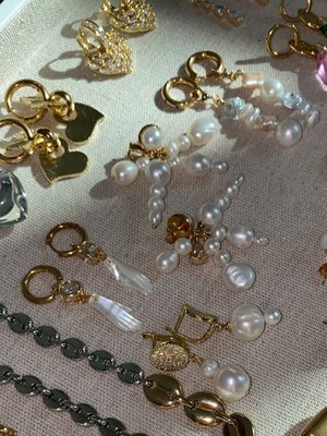 14k thick gold plated brass charms, hypoallergenic gold plated stainless steel hoops